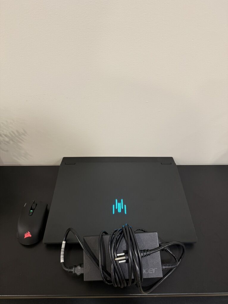 Only a couple months old, works and runs flawlessly. No issues or problems whatsoever. Comes with the super nice gaming, mouse and the charger.