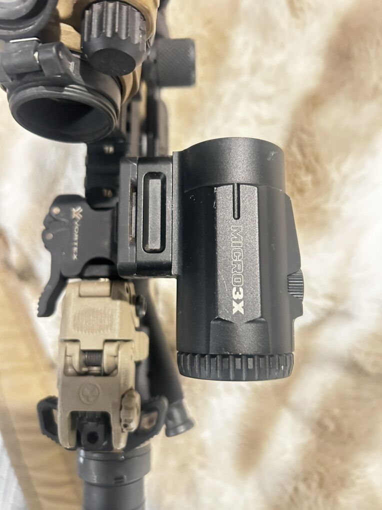 VenmoGreat condition. Comes with AP mount and SKD 1.93 riser. Vortex x3 magnifier also mounted on a flip to side 1.93 riser to co witness reddot. Risers can also be removed to restore to standard height.