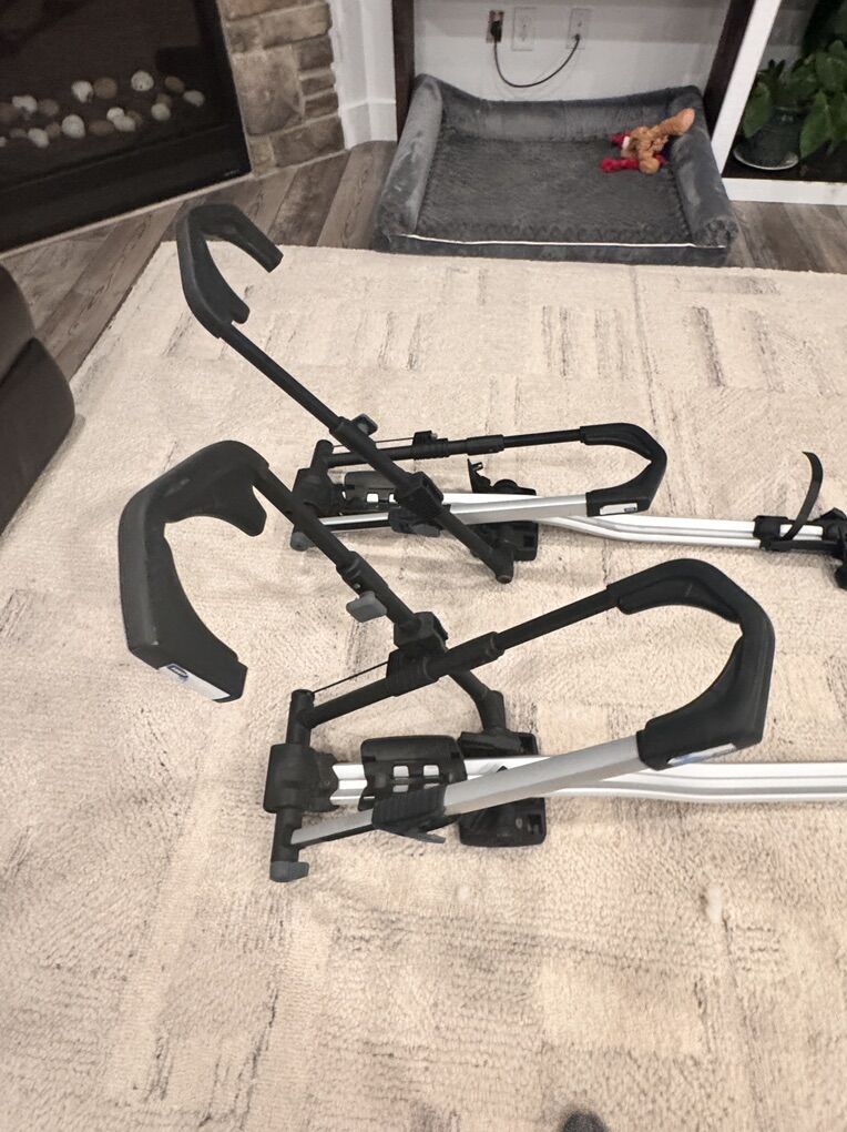 VenmoThule Upride roof-mounted bike racks. We had these mounted on our Subaru. Like new- no damage, minor scratches and wear, but truly in great shape. Works great for road bikes and mountain bikes including up to 29 inch wheels. Cross rails not included, I bought bought the cross rails separately. $325 for both racks together, or $190 separate.