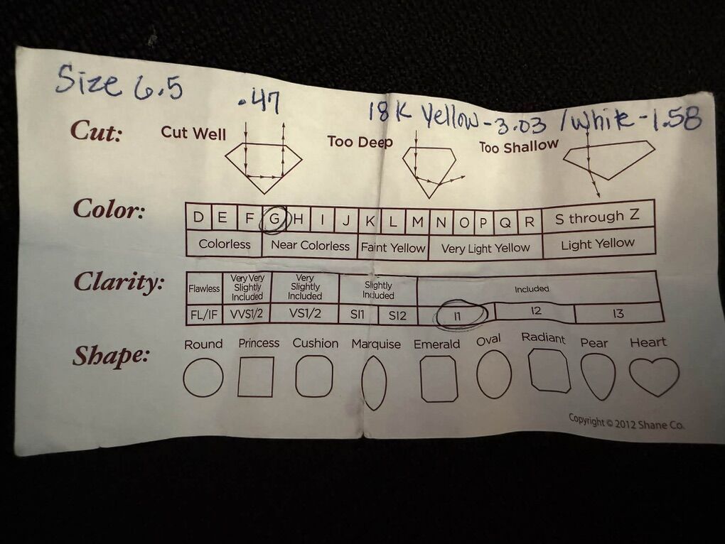 Diamond Color: Near Colorless (approx. G)
