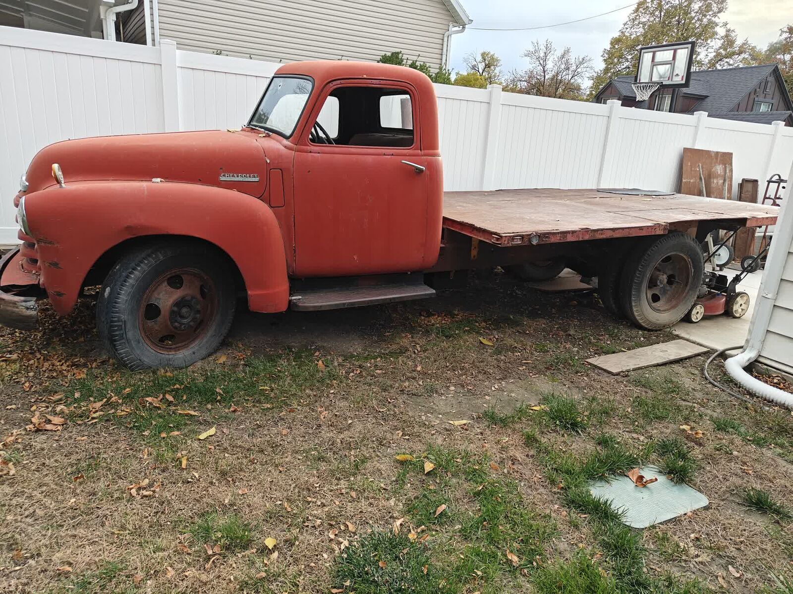 This is a 1947 or 48 truck with the large bed. We also have a short bed frame option ($350) in a different ad. There's also a trailer in a different ad that has the short bed ($650). If you buy all of them we'll sell for 2500. The engine ran a few years ago.