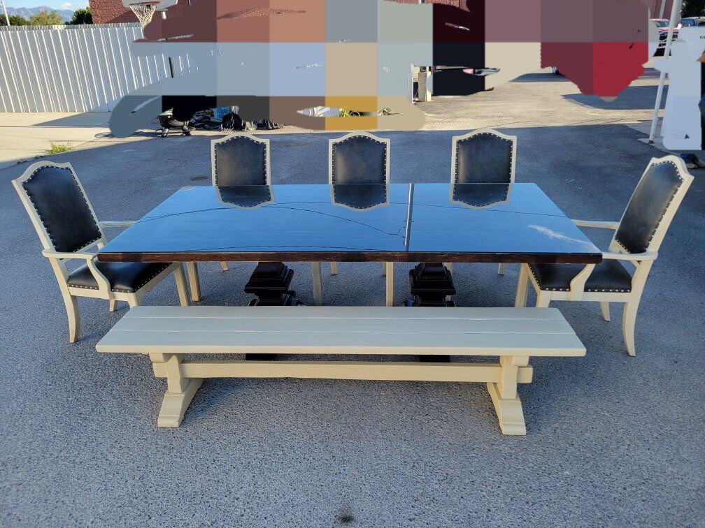 Ethan Allen table chairs and bench. Seats up to 8 people. Very heavy duty. It's just collecting dust and need it gone ASAP.