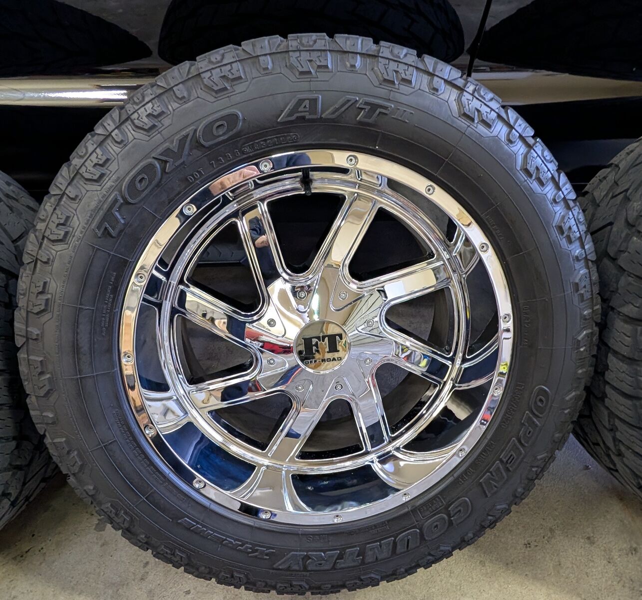 VenmoNo curb rash, super clean. Very quiet and run fantastic on the freeway. Full Throttle FT-2 20X10 deep dish polished wheels with Toyo A/T Open country Xtreme LT305/55R20 tires that have a lot of tread left and TPMS sensors. Would make any truck look great. Or a realistic cash offer. Located in Cottonwood heights. This is the cost new. Rims-$1800 Tires-$1944 TPMS sensors-$385 Total $4129