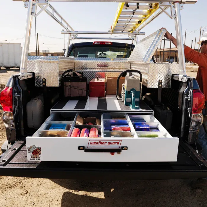 VenmoWeather guard Pack Rat drawer unit tool box. 48'x39.75'x9.5' More dividers to go with the tool box.