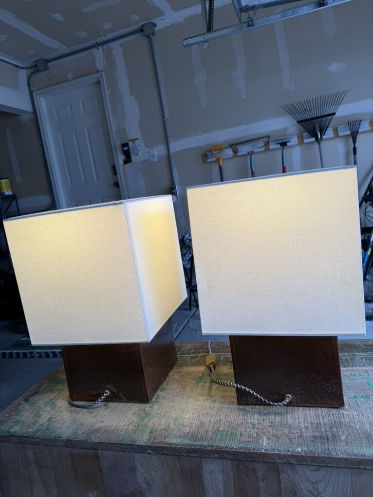 Venmo2 Copper colored lamps. Both work great! Have really long cords. $50 OBO. Dimensions: W- 11 1/2” Square H- 18”