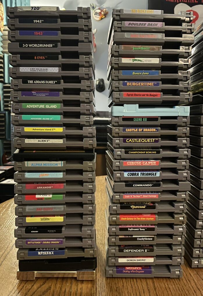 VenmoI have a giant lot of NES Nintendo Entertainment System games in great condition. There are a lot of rare games in this lot. Every single one has been hand cleaned by me inside and out. They all work perfectly. Most are in superb condition. These are from my personal collection. They have been stored in a smoke free home on a shelf inside protective cases by Stone Age Gamer. I’m downsizing to make some room and fund some other projects.