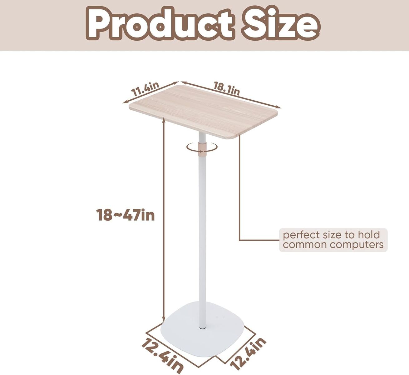 ApplePaytonchean Portable Standing Desk, Laptop Floor Stand & Projector Stand Adjustable Height (18.5"-47.2"), Floor Podium Workstation for Home Office, Bedside, and Small Spaces