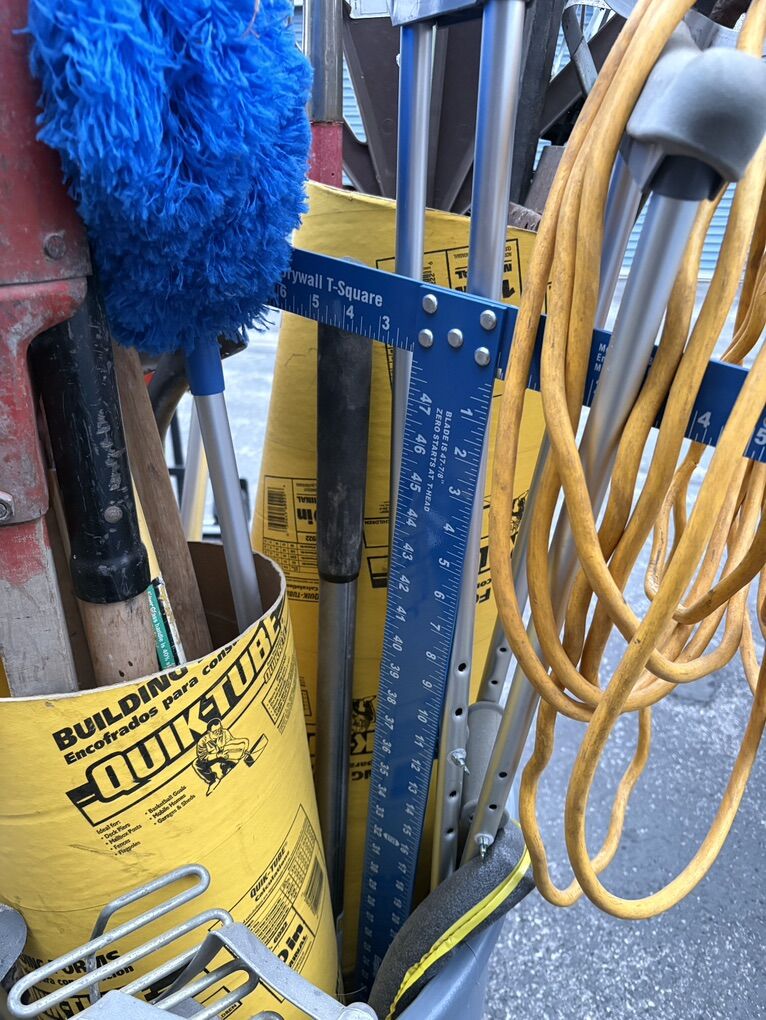 There is a heavy duty steel digging bar that may not be visible and also a long handle sledge hammer.