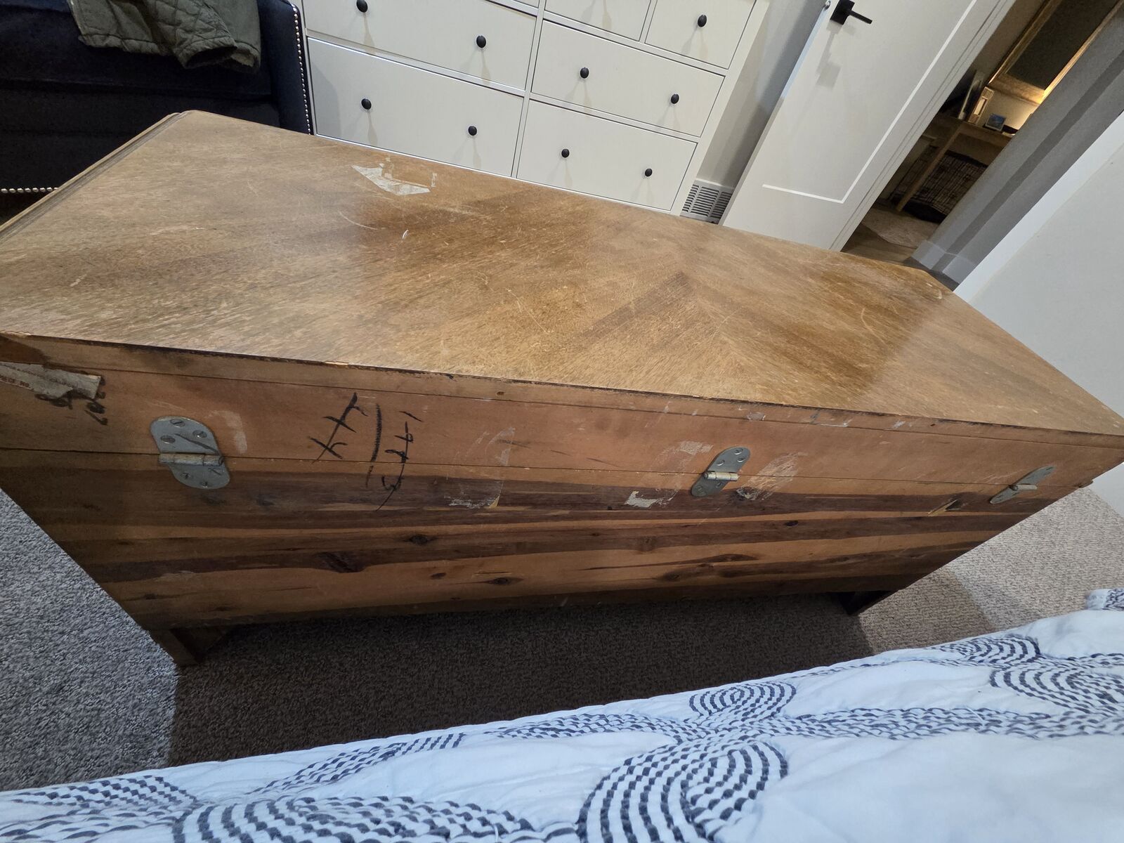 VenmoAmazing Cedar chest. Interior is pristine. Exterior has some minor scratches/stains. Is perfect for storage of blankets, clothes, toys, etc.