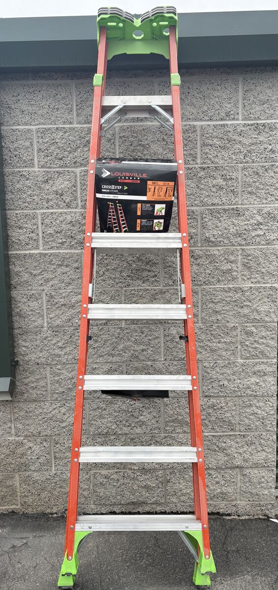 Louisville Cross Step 8 ft. Fiberglass Leaning Step Ladder (12 ft. Reach), 300 lbs. Load Capacity, Type IA Duty Rating