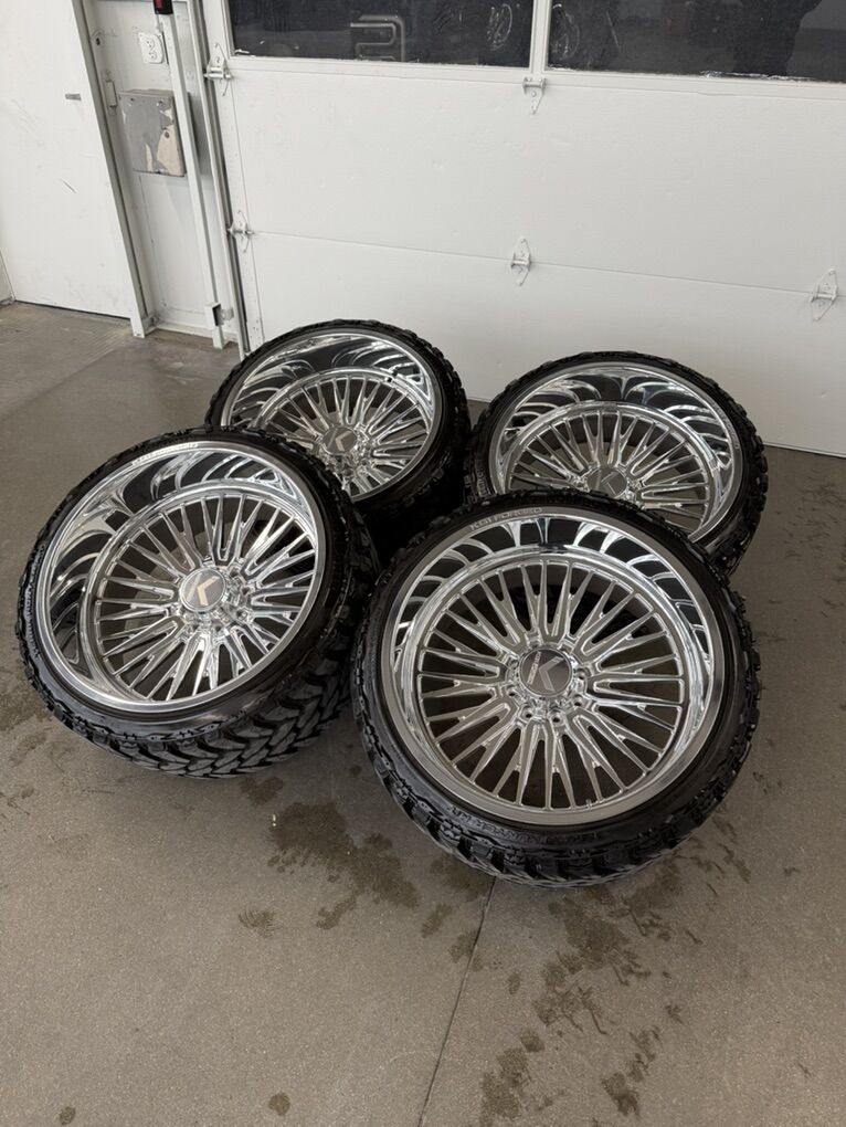 ApplePayBRAND NEW LESS THEN 1,000 MILES 26x14 KG1 forged “allure” Billet floating caps 35x13.50r26 venom m/t tires