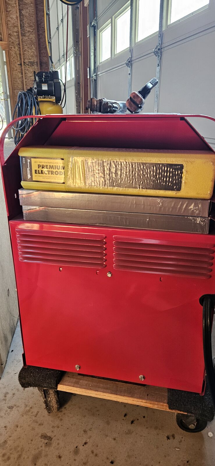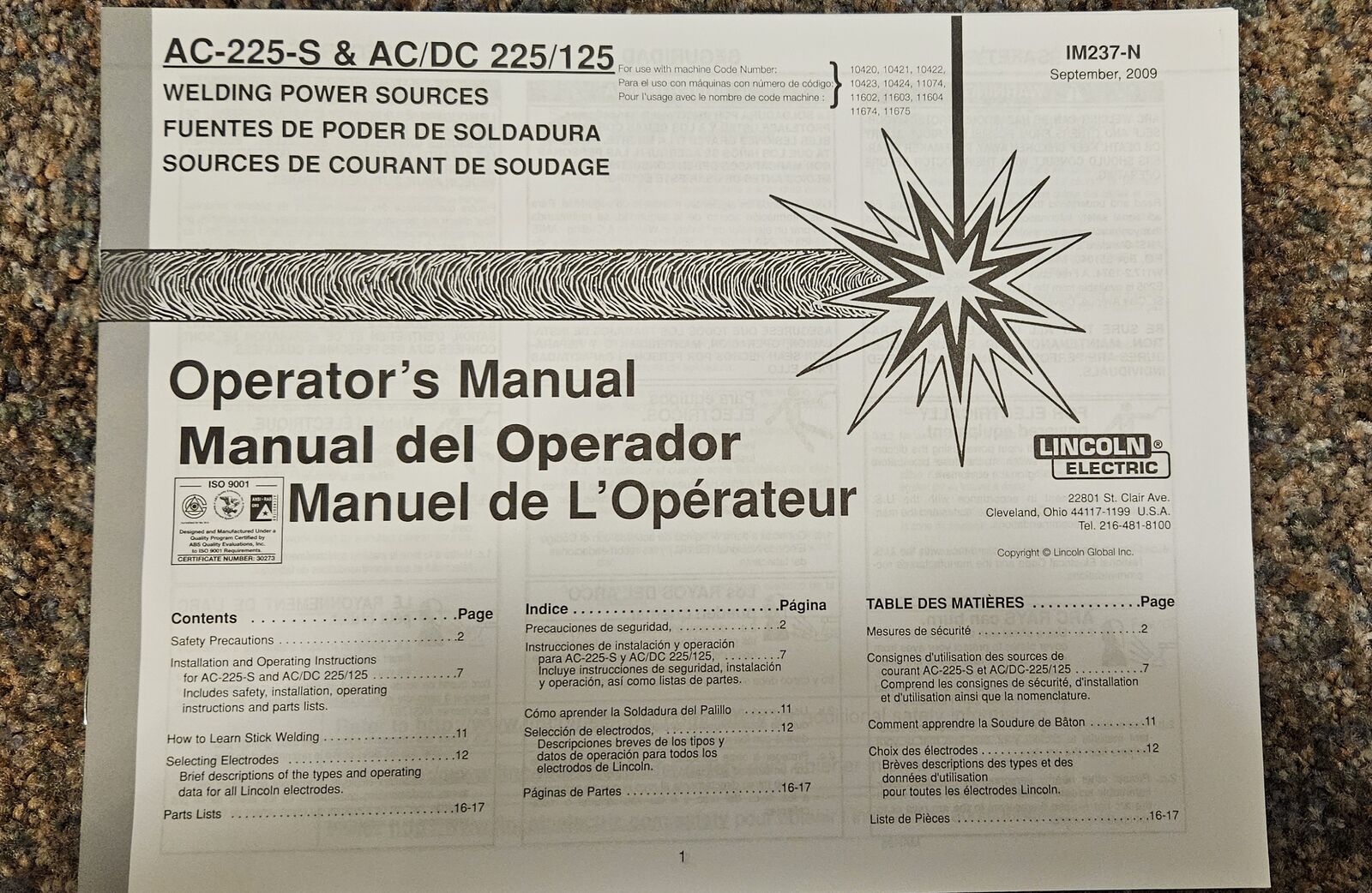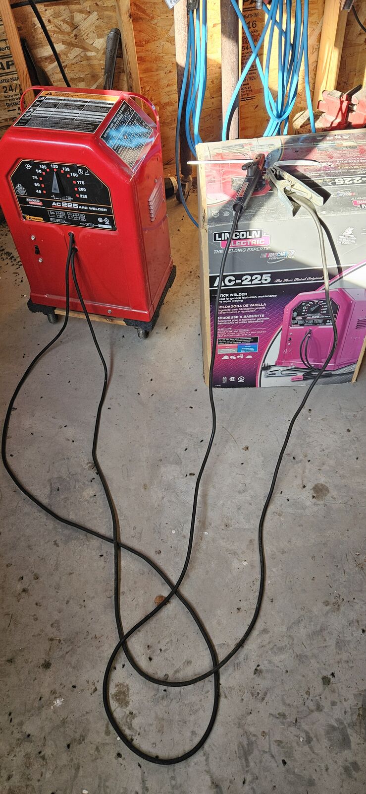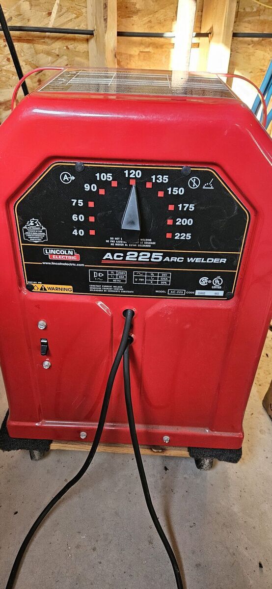 Model: AC-225 Type: AC stick welder Output range: ~40–225 amps Rated output: 225 A at ~25 V, 20% duty cycle Power: Typically 230V single-phase input Cardboard cover included