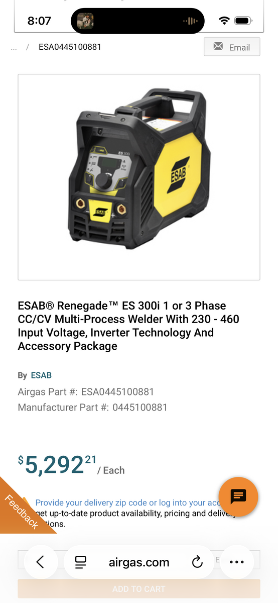 ApplePayEsab Renegade ES300I welder