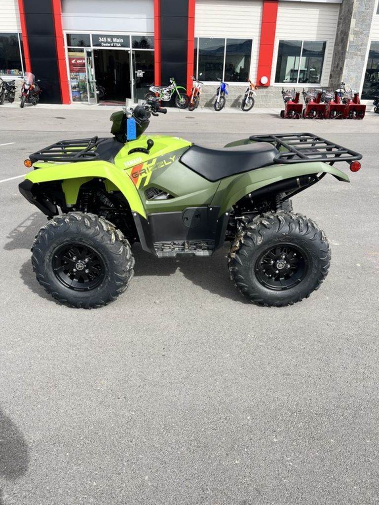 2026 Yamaha Grizzly EPS TRAIL TESTED, RIDER APPROVED With superior capability, all-day comfort and legendary durability, the Grizzly EPS is the best-performing ATV in its class. Features may include: POWERTRAIN The potent big-bore 686cc engine features power delivery, torque and engine character all optimized for recreational riding. High-mounted air intake layout increases power and torque while keeping water, mud and trail debris at bay. Intake design also provides additional room for on-board storage and easy toolless servicing of the air filter. Stainless steel exhaust system and features a screen-type spark arrestor for great power with minimum noise output. Featuring Yamaha's Ultramatic transmission, the industry's most advanced and durable CVT drive system. Grizzly EPS' Ultramatic transmission features a gated shifter, dual-range (Hi/Lo) drive, plus reverse gear. CHASSIS Long-travel shocks, wide-arc A-arms and full-body skid plates ensure the Grizzly EPS is ready to go wherever you are. To handle nearly any terrain with ease, the Grizzly EPS offers an impressive 11.3-inches of ground clearance. An independent double wishbone suspension serves up 7.6 inches of front wheel travel and 9.1 inches at the rear./p> Nitrogen-charged shocks offering 5-way adjustable preload provide excellent rider comfort on the most challenging trails. Industry-leading speed-sensitive Electric Power Steering provides excellent control and trail feel, along with reduced fatigue. Four-wheel hydraulic disc brakes offer consistent stopping power with unmatched braking feel. ADDITIONAL FEATURES LED headlights and taillight uses less power, creates brighter, sharper illumination and offers lifetime durability. A handlebar-mounted halogen work light provides additional illumination that moves with rider input for excellent visibility. A convenient 12V power point comes standard for keeping devices charged. Three on-board storage compartments keep things secure. The Grizzly EPS is assembled in the USA to meet Yamaha's exacting standards for durability and reliability.