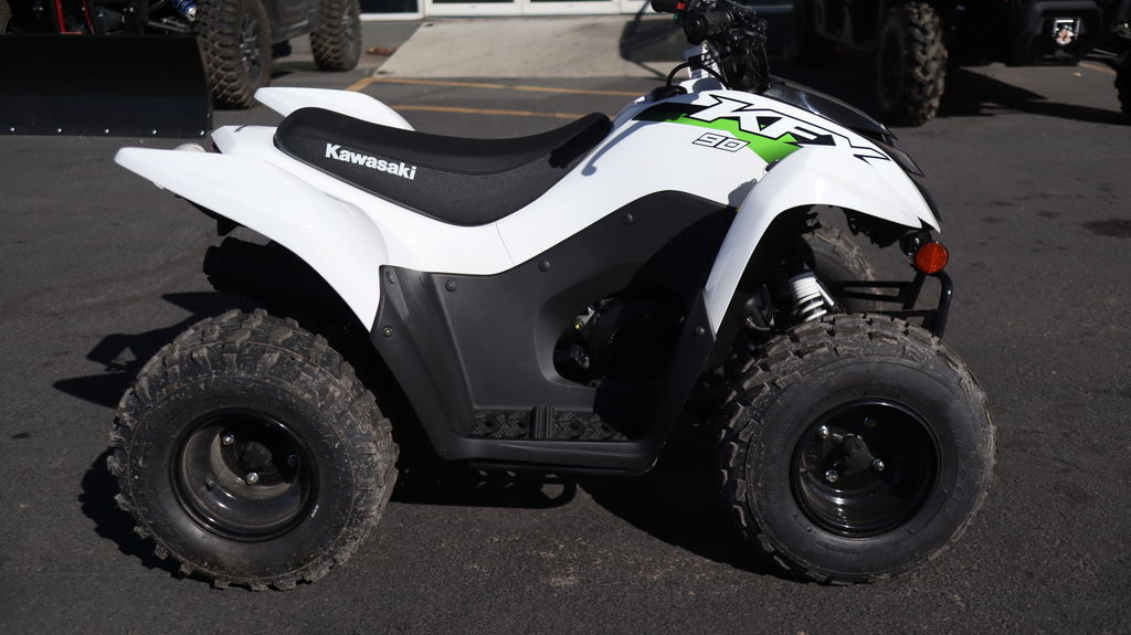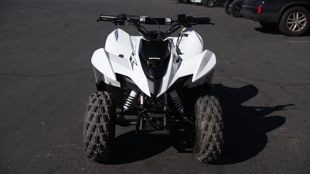 2026 Kawasaki KFX®90 FOR TOUGHER TERRAIN & BIGGER ADVENTURES Four-wheel fun starts with KFX®. Get the kids outdoors and ready to ride on the KFX®90 ATV line with proportionate power and size for riders ages 10 and older. KFX90 ATVs let kids take on more challenging tracks and bigger adventures with an 89.9cc engine and sporty suspension. Features may include: PROTECTION GET A GRIP Full coverage floorboards with slip-resistant footing contribute to increased grip and help young riders control their ATV when riding while in a standing position. Effective mud protection keeps the engine running at a cooler temperature and keeps dirt and debris from building up near the engine. SUSPENSION SMOOTH OUT YOUR RIDE Independent A-arms in the front and swingarm rear suspension soak up bumps for a smooth ride and contribute to sporty handling. STYLING RIDE WITH SWAGGER Front LED accent lights and LED taillights add to the already race-inspired bodywork. Additionally, a tall design of the front fenders conveys a strong sporty off-road performance look. ADDITIONAL: Sporty front-end styling Front LED accent lights and LED taillights Full coverage floorboards with slip-resistant footing Independent A-arm front suspension and swingarm rear suspension