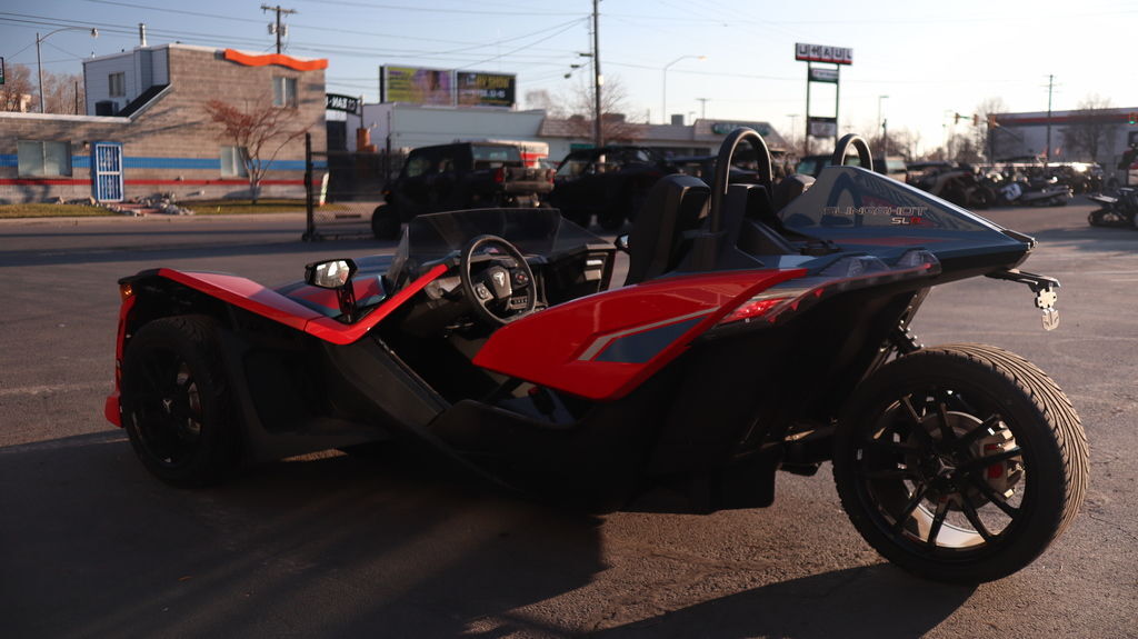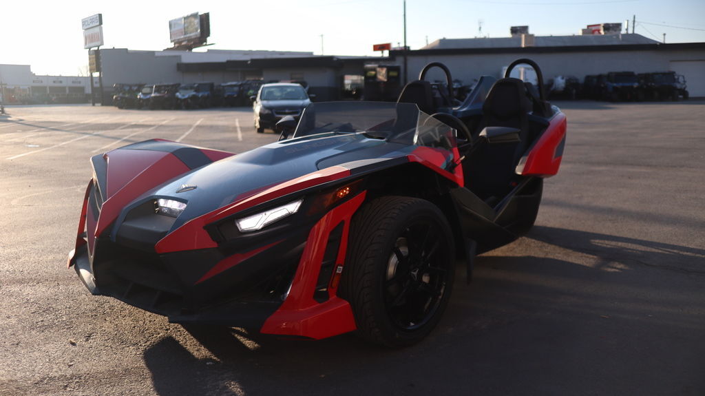 2025 Polaris Slingshot® Slingshot® SLR AutoDrive POWERFUL POSSIBILITIES The Slingshot SLR delivers upgraded performance and high-end style from the get-go. Designed for those who want a little extra oomph under the hood with a high-revving 204 HP engine to deliver dynamic passing power and some extra acceleration at the lights. Factory finished with the new SLR front end, new Stage 2 Max Rockford Fosgate® 8” speakers, two-tone paint, extra exterior lighting, sport interior and a bigger 305mm rear tire to strut the streets. It’s loaded up and just begging to be personalized. Features may include: STYLE AT THE FOREFRONT The fully redesigned SLR front end provides fresh, bold styling with painted outer wings so you will continue to turn heads whether you're parked or cruising down the road. MORE POWER, MORE FUN Cut ahead of the rest with 204 HP from the ProStar 2.0L 4 Cylinder Engine and two drive modes, Comfort & Slingshot mode, giving you more power. FEEL THE BEAT The Stage 2 Max Rockford Fosgate® larger, 8” speakers leverage additional surface area to produce the most bass and volume you can get on a Slingshot, ensuring your favorite music cuts through wind and road noise at any speed. LIGHT UP YOUR LIFE Turn on the style with upper and lower accent lighting and see how easy it is to make a big impression. THE LIFE OF THE PARTY Leave your impression on every road you travel with the Kenda 305/30R20 rear tire, giving your ride a bolder stance from the rear. SIT BACK, GET COMFORTABLE Bring comfort and style to your ride with increased side bolsters and lumbar support soak in that wind therapy. AMPLIFY YOUR RIDE Infused inside and out with tech that turns heads, including a 7" Display powered by RIDE COMMAND so you can take control of the road like never before.