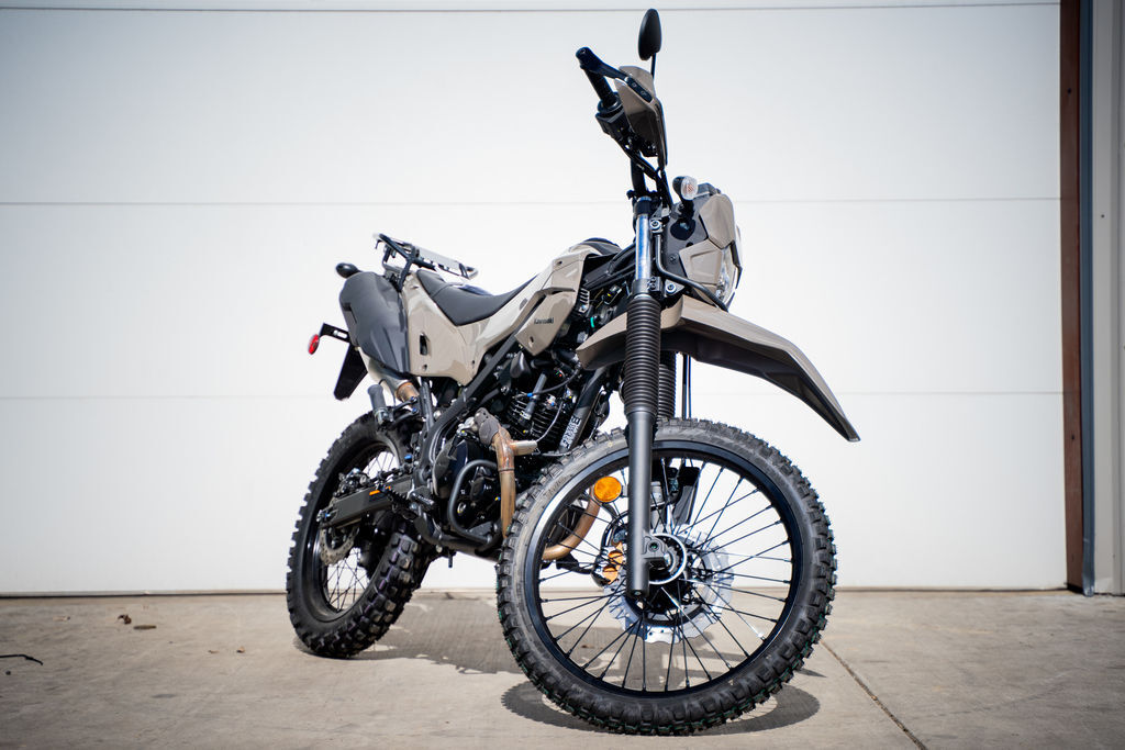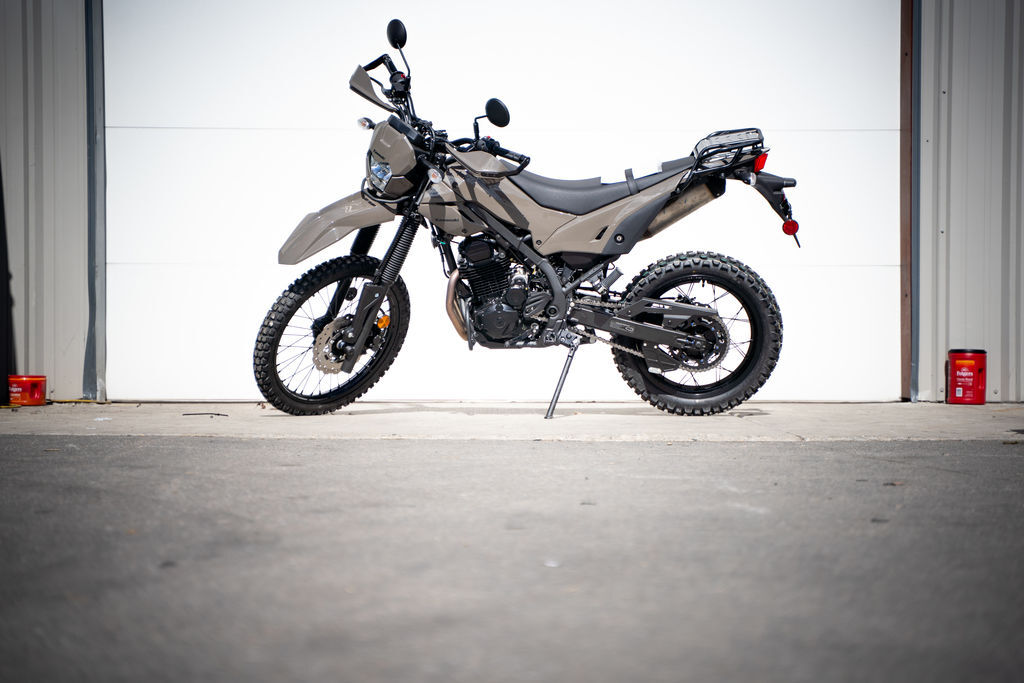 2026 Kawasaki KLX®230 DF ABS READY FOR ANY MISSION Introducing the all-new, rider-friendly, confidence-inspiring KLX®230 DF ABS motorcycle. Activate stealth mode and go from pavement to dirt seamlessly. Featuring light handling, rugged chassis, and a tubeless rear tire for on-the-go reliability, the KLX230 DF ABS is ready for any mission. Features may include: RIDER-FRIENDLY POWER COMMANDING PERFORMANCE Activate stealth mode on the rider-friendly KLX®230 DF ABS dual-sport. Experience smooth, consistent performance both on- and off-road. RUGGED CHASSIS LET’S GO RIDING Your comfort doesn’t end when the pavement does. The KLX®230 DF ABS dual-sport’s well-balanced, lightweight chassis gives you the confidence to keep riding when the road ends. ERGONOMICS & STYLING STEALTHY Stay under the radar while standing out. The KLX®230 DF ABS dual-sport has got it all—stealthy good looks and rider comfort, protection, and technology designed for on- and off-road journeys. ADDITIONAL: Rugged dual-sport capability and blacked-out utilitarian trail bike design 33.3-in seat height Aluminum skid plate and engine guards Rear carrier 18-in rear wheel with tubeless tire Tapered aluminum handlebar and metal-reinforced hand guards Stacked dual-LED headlight with guard-bar Slim shrouds for a broad view of the ground