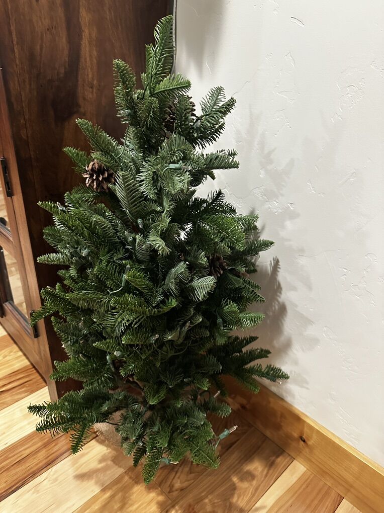 Online description: 3' Real Touch™️Pre-Lit Viella Norway Spruce Artificial Potted Christmas Tree - Clear Lights