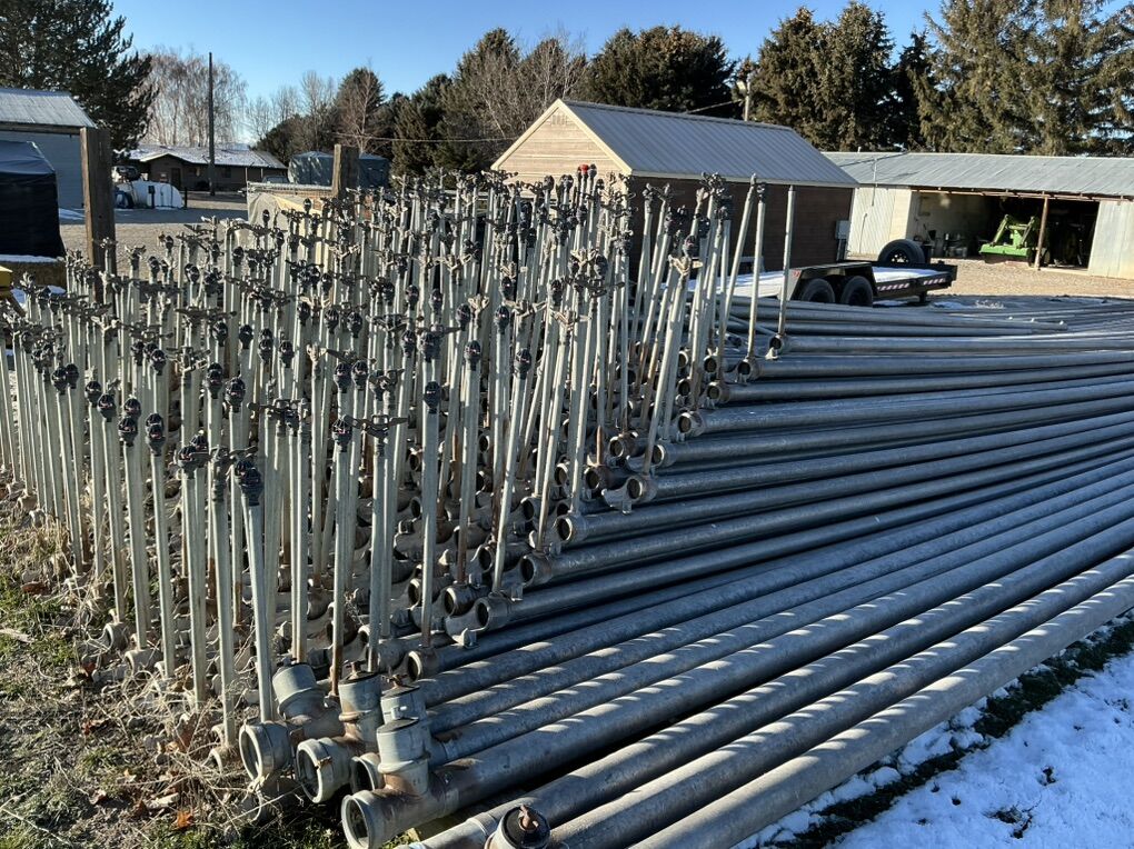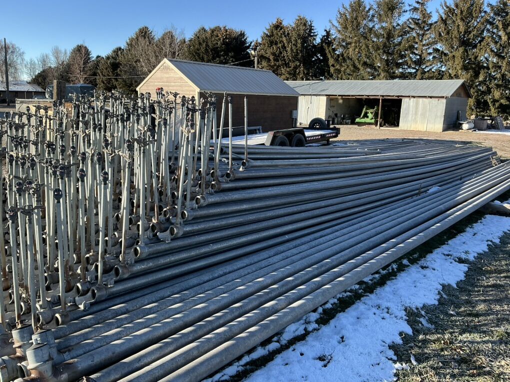 7-50ft 4” aluminum main line with steel valve and ring lock clamps. Like new 350.00 each.