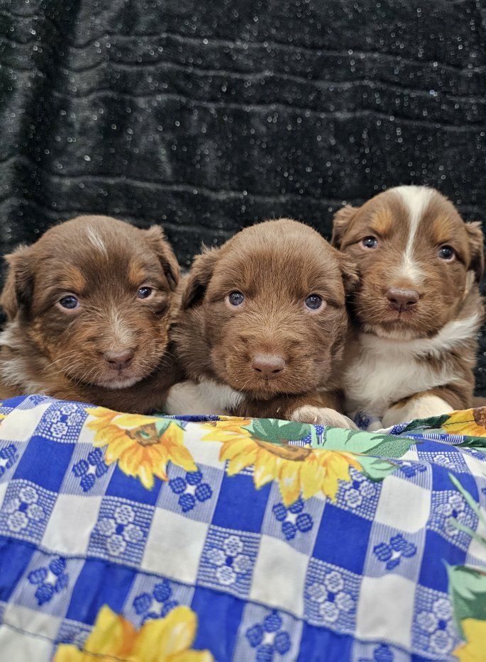 Purebred Aussie Puppies!Born 2-9-26 5 puppies are available (3) male (2) female 3 Red tri (2 male, 1 female) 2 Black tri (1 male 1 female) Looking for a loyal intelligent companion? Look no further!