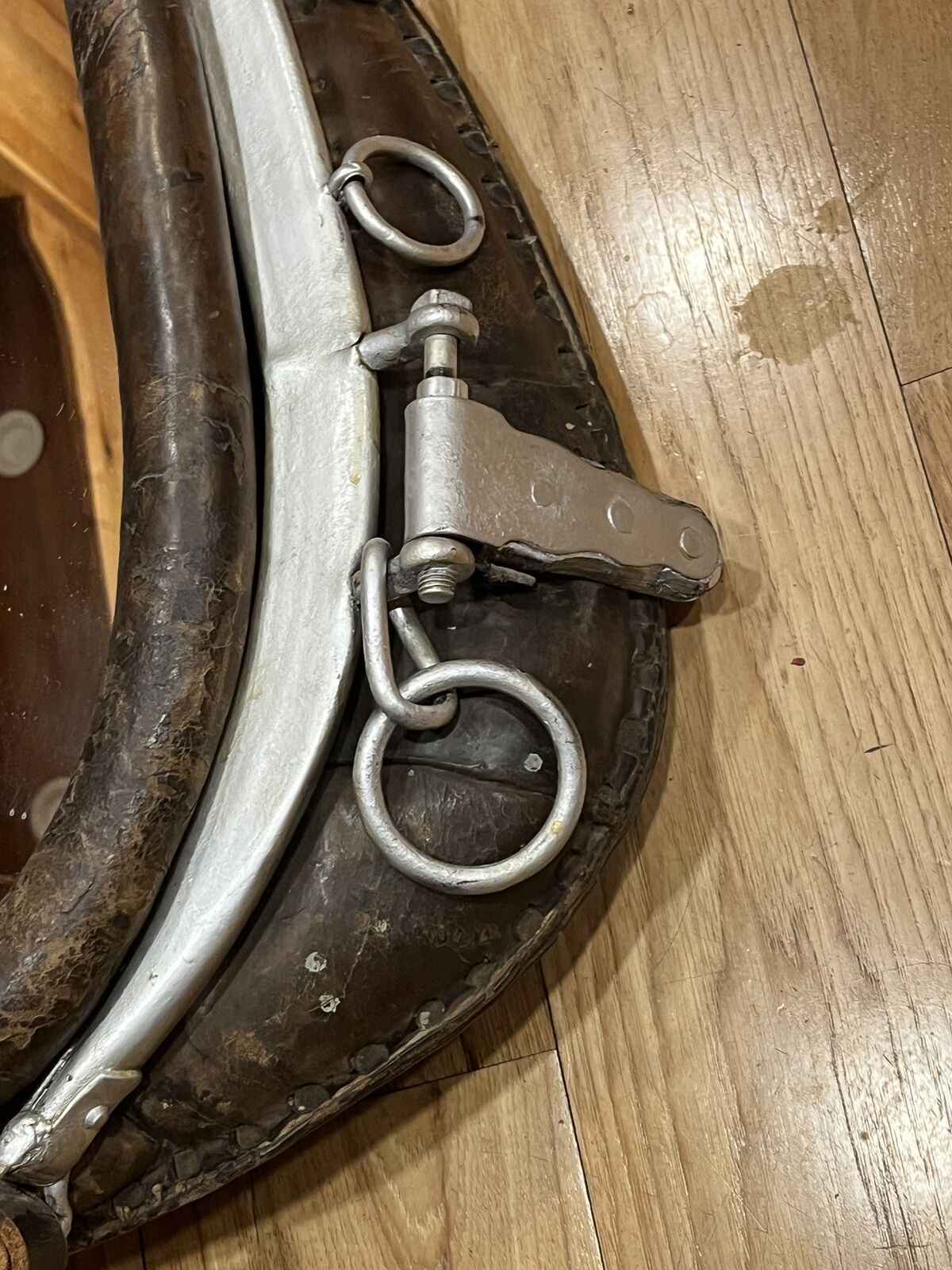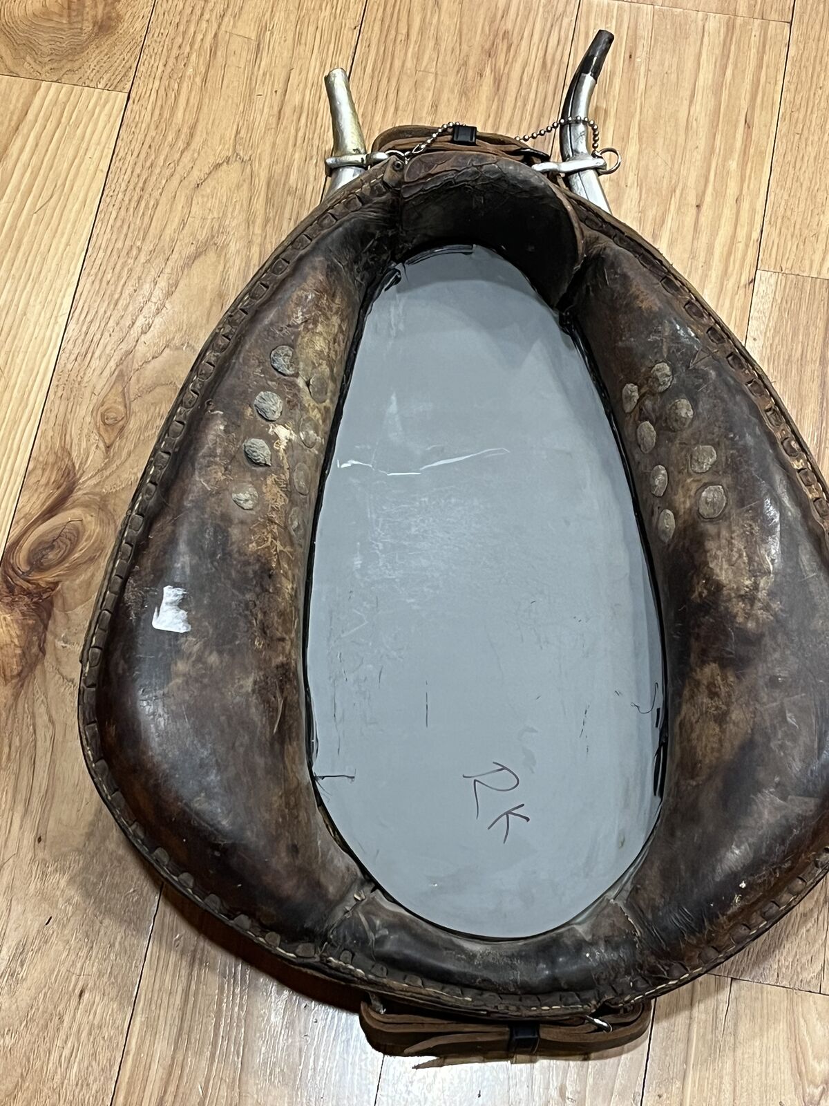 VenmoThis measures about 28 inches tall and 19 inches wide. Made from vintage horse harness. Located in Layton. Firm on price.