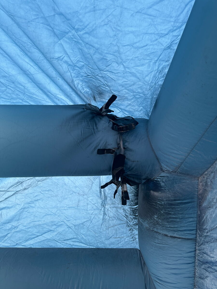 Has a tear on the upper left side air tube patchable I just used clamps to hold it together and it does the trick if Intrester message me thank you