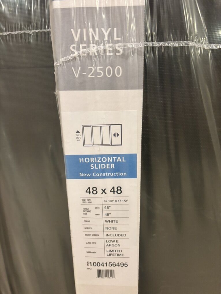 Description- (SET OF TWO) 48”X48” V-2500 vinyl series horizontal sliding window. See photos for more product information and specifications.