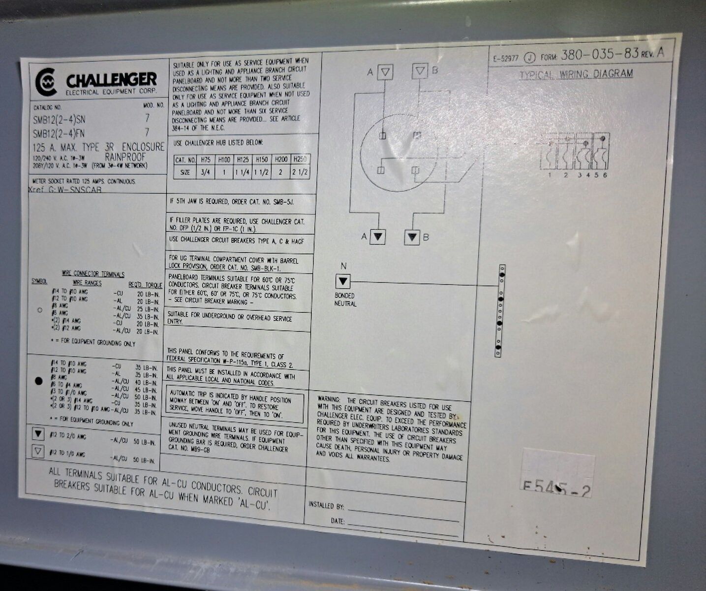 Challenger SMB12(2-4)SN Circuit Breaker Panel Box Enclosure.