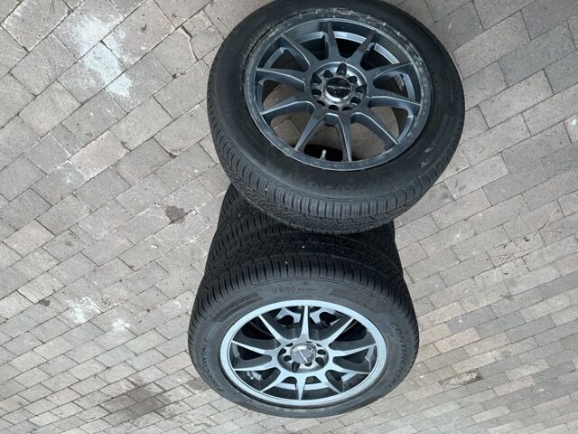 VenmoSet of 4 Vision wheels with 205/55/R16 Continental Tires. Bolt pattern of wheels is 5X100mm from Toyota Corolla. Tires were manufactured 22nd week of 2017 but have very little wear and have been stored inside garage. $200 for set OBO