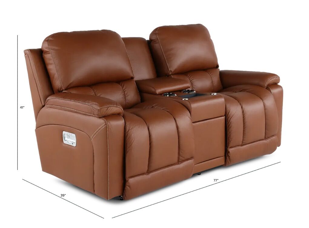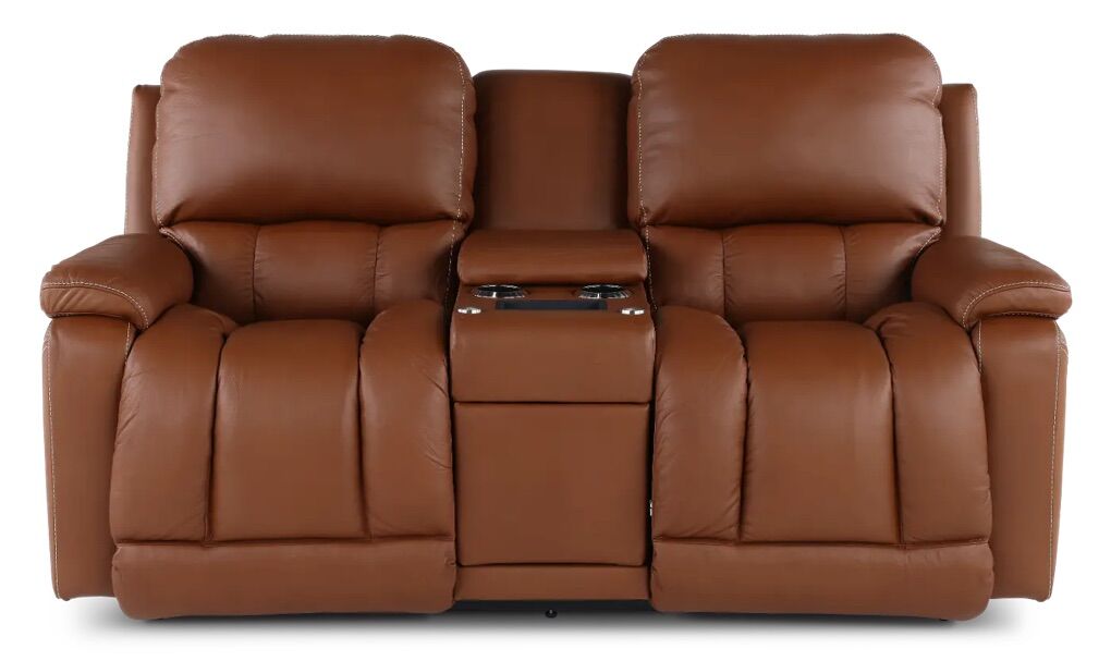 Greyson Caramel Power Reclining Loveseat with Headrest and Lumbar
