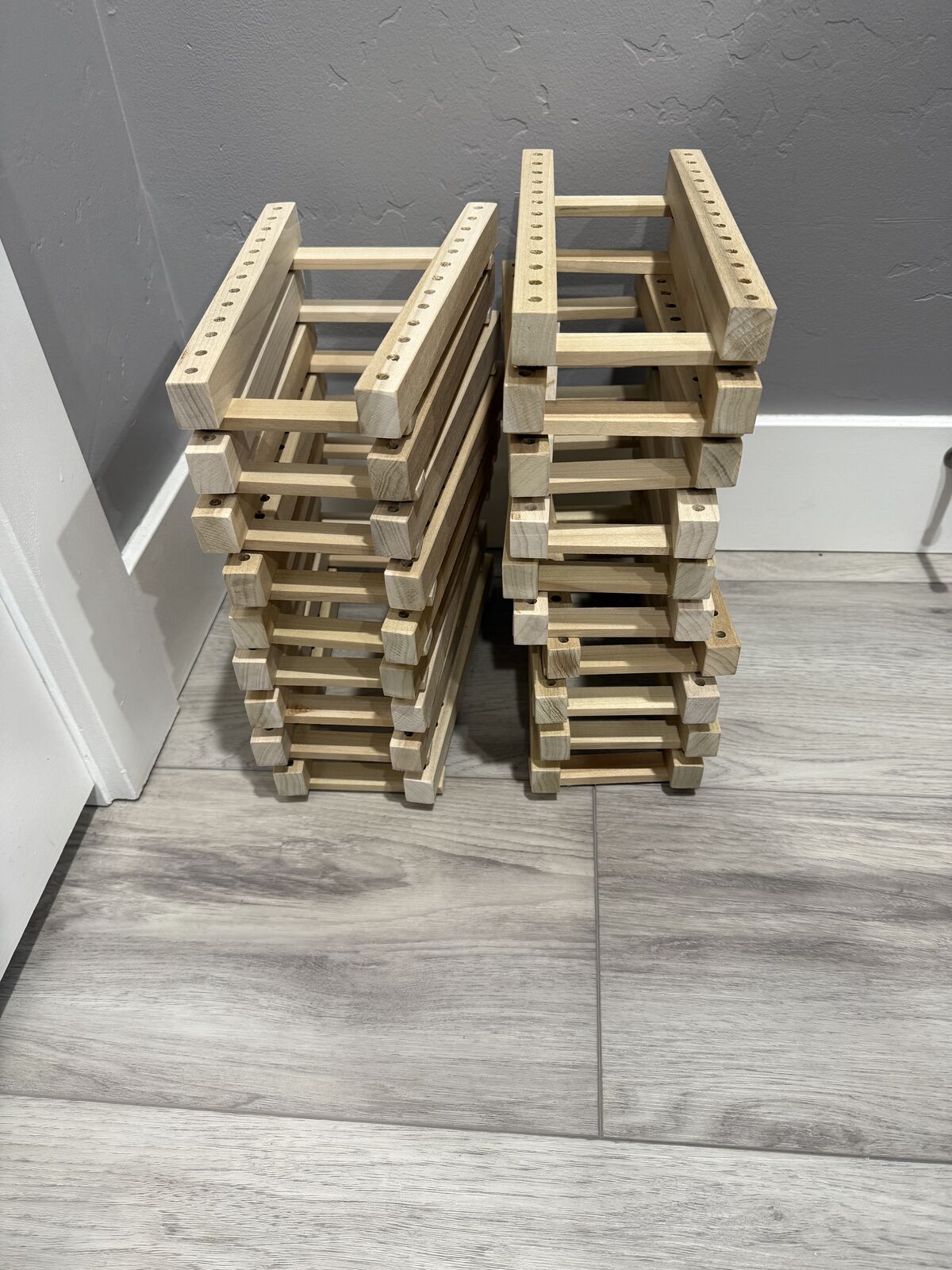 VenmoMy wife asked me to make these and I made too many. They are adjustable plate stands and come with different length dowels and many holes to fit your plate / dish needs. $3 each or make an offer on all 19 of them.