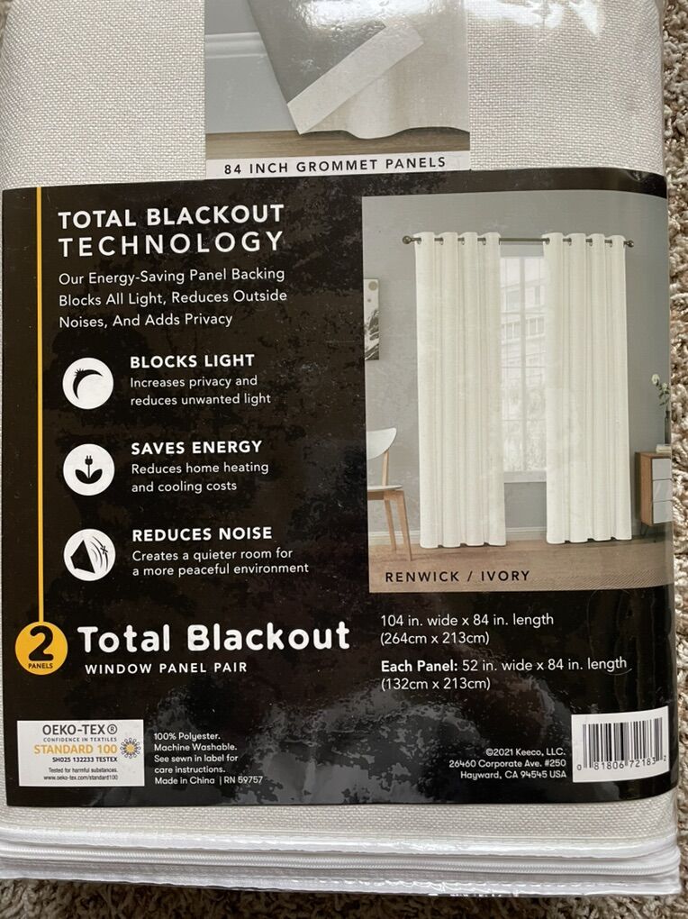 ApplePayNew Pair Total Blackout Curtain 52x84 per Panel in ivory! There are 2 panels per package and I have 2 packages/(4 panels total)! The price is for one package/2 panels! Let me know if you need both.