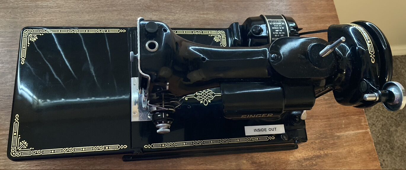 VenmoCase, manual, and accessories. New electrical cord. Works well and oiled. Been stored in its case. Don't have a background. Was in my mother's possession until she passed.