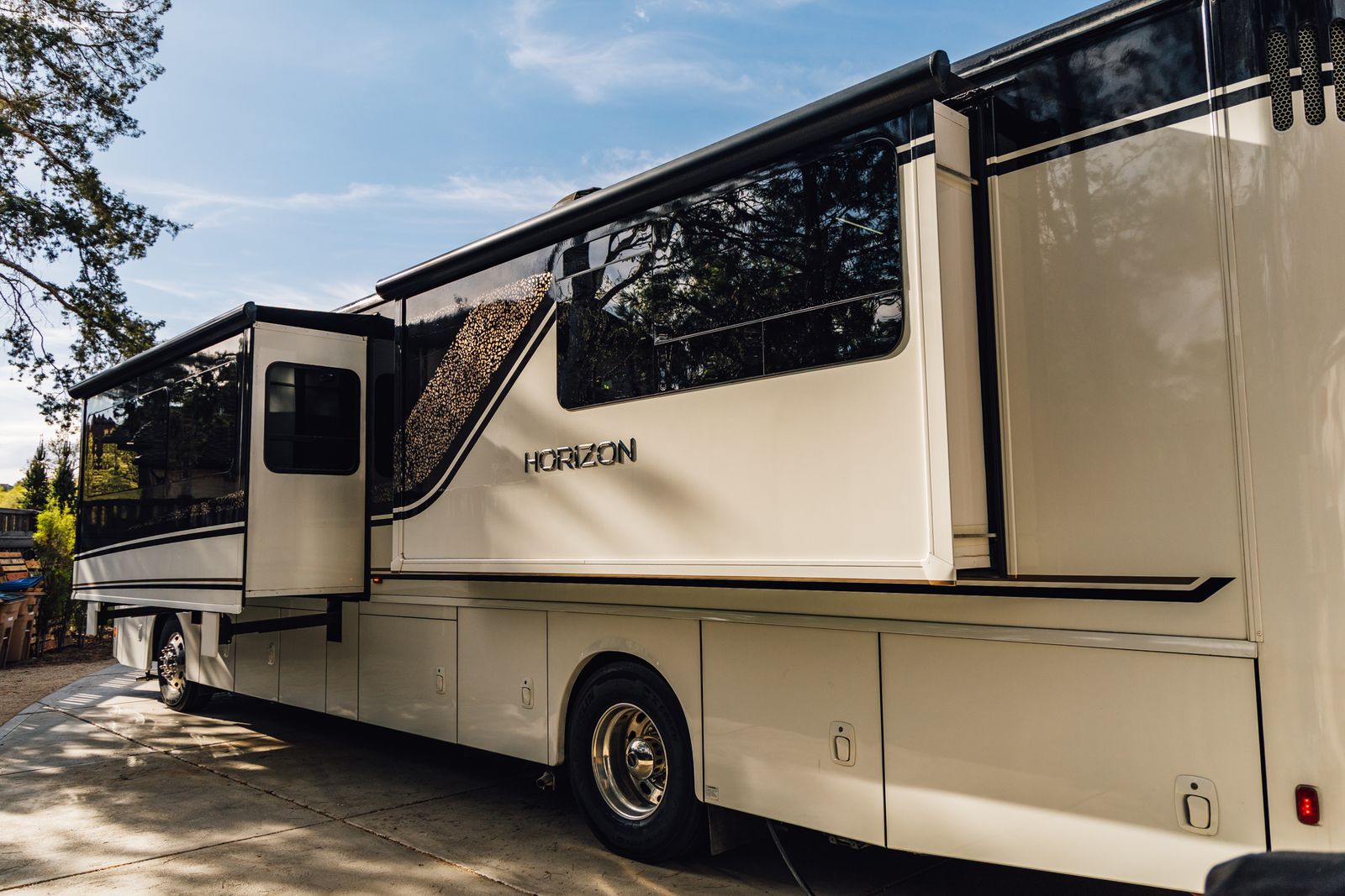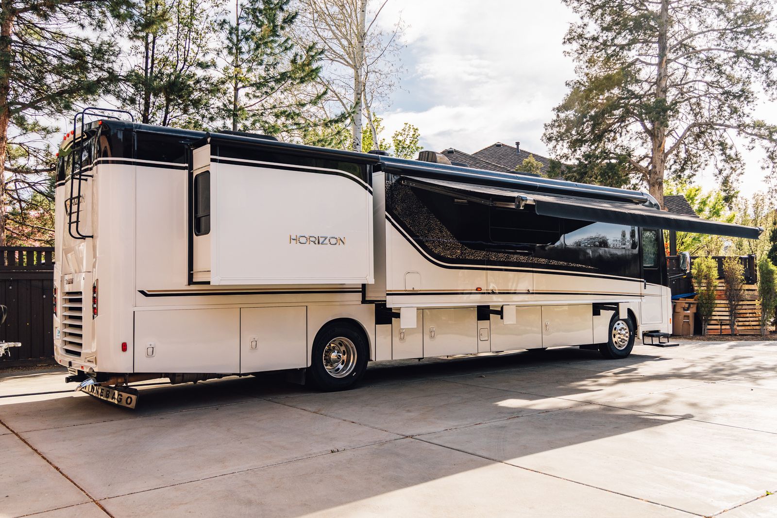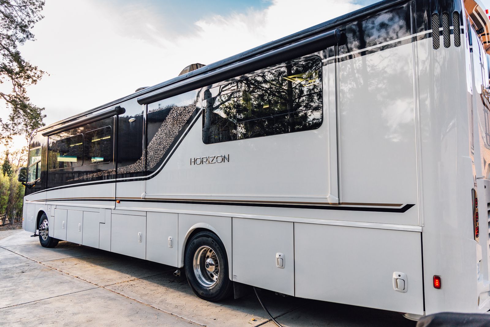 • Freightliner Chassis with a 15,000 lb towing rating and hitch