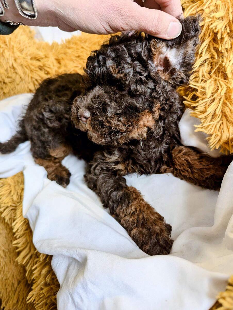 We are offering the final two female puppies from our AKC-registered miniature poodles, bred from a carefully preserved elite phantom color line distinguished by exceptionally rich, high-contrast phantom markings. These girls represent the culmination of a program built on intentional breeding, advanced health testing, and exceptional temperament.