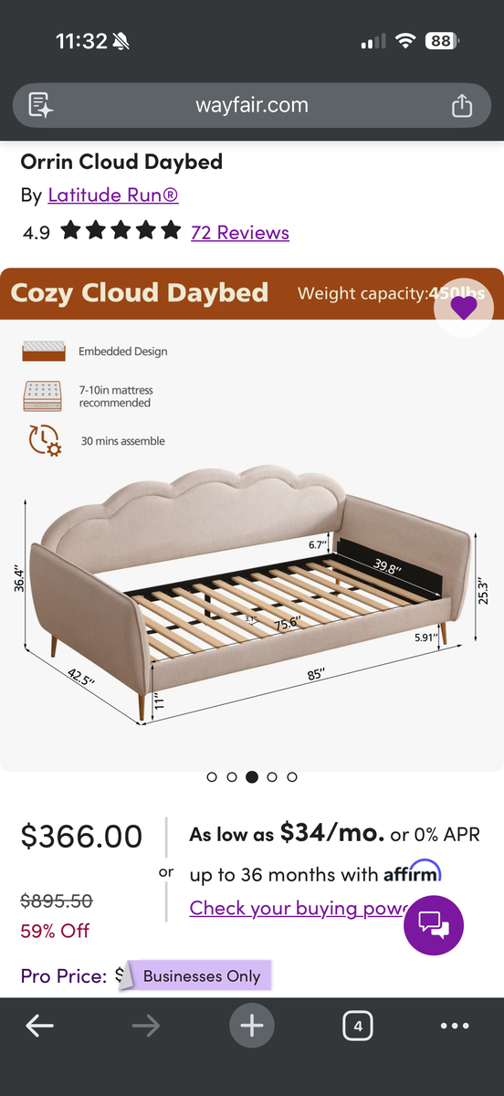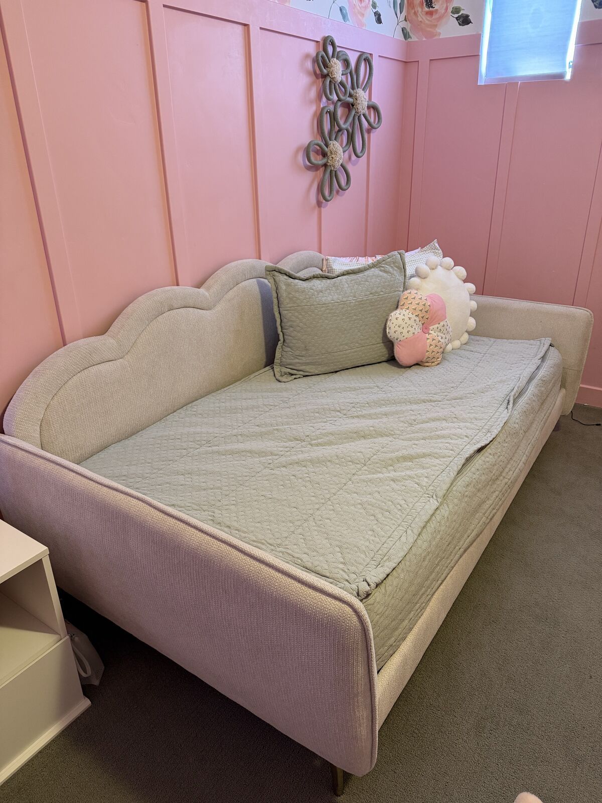 Twin daybed with shelving and usb charging, purchased from Wayfair less than a year ago, selling because we are moving.
