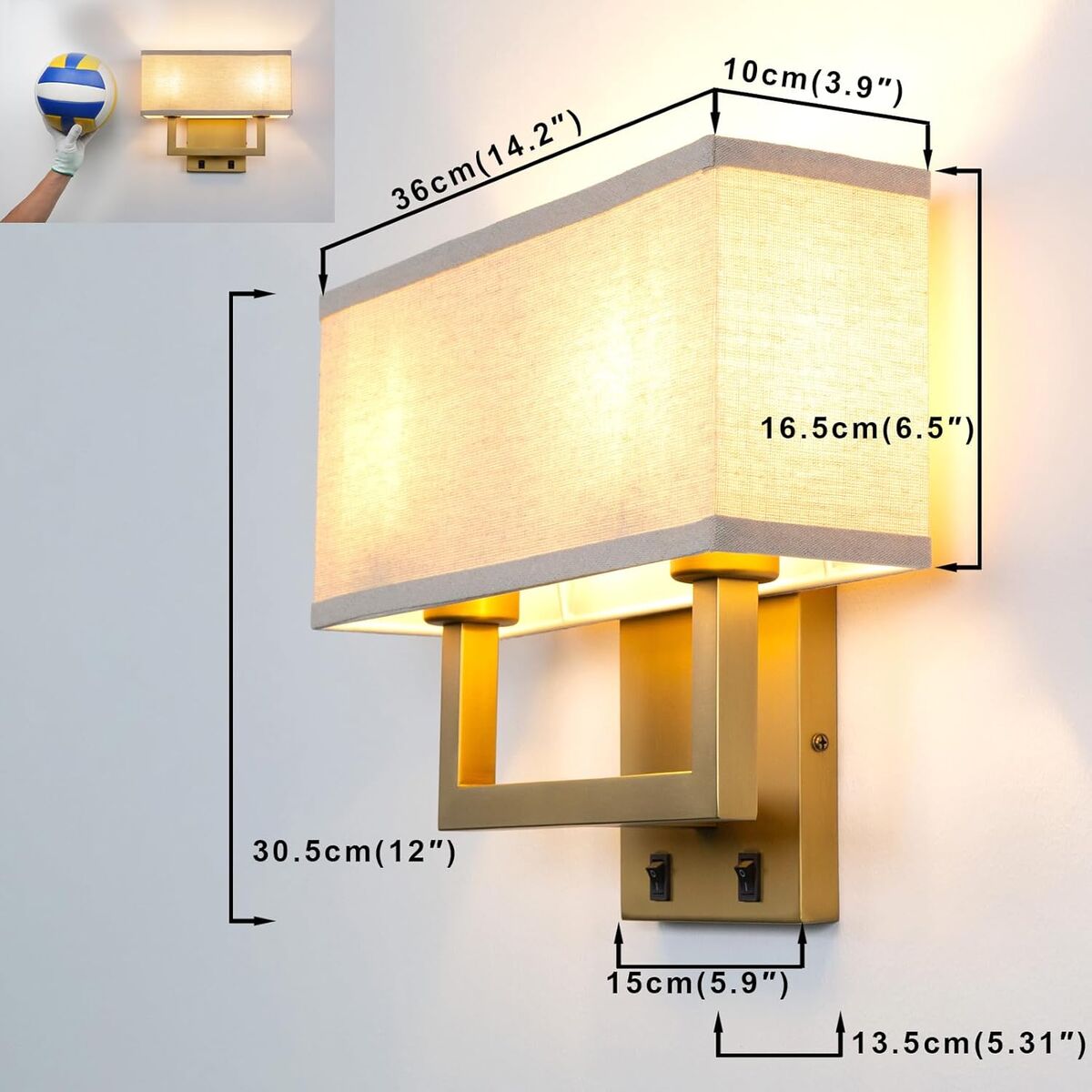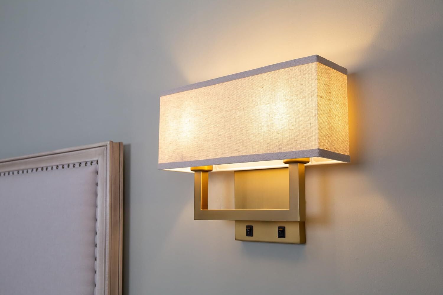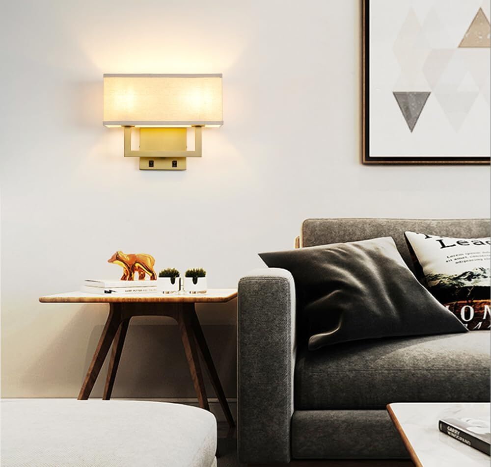 ApplePayYosoan Linen Fabric Boho Wall Sconce Bedside Light with On Off Switch, 2-Light Brass Finished Hardwired Vintage Industrial Dual Wall Mount Lamp Square Shade for Bedroom Living Room Stairwell(Antique)