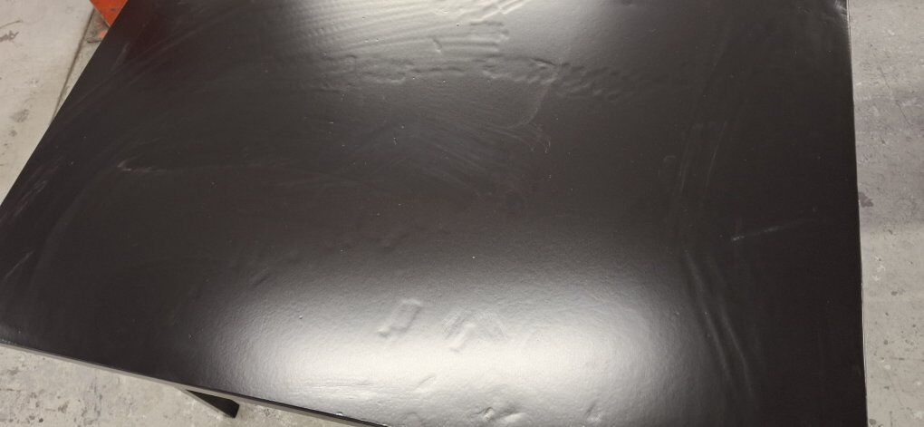 GooglePayasking 300OBO has some scuffs from sanding on the top of table that were painted. Table measures 48 1/2 length,32 1/2 wide and 36 inches tall