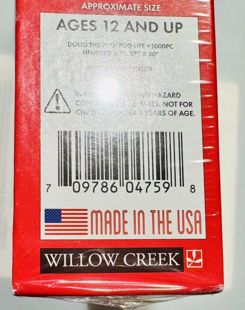Doug the Pug presents the Pug Life. Living the pug life can work up an appetite! Get your fill of Doug with this entertaining puzzle. Proudly made in the U.S.A., this delightful 1,000 piece puzzle features a precision cut image on high-quality blue board. The fully-interlocking pieces are poly-bagged for protection inside an attractive, shelf-friendly box. Assembled puzzle measures approximately 26.625 x 19.25 inches.