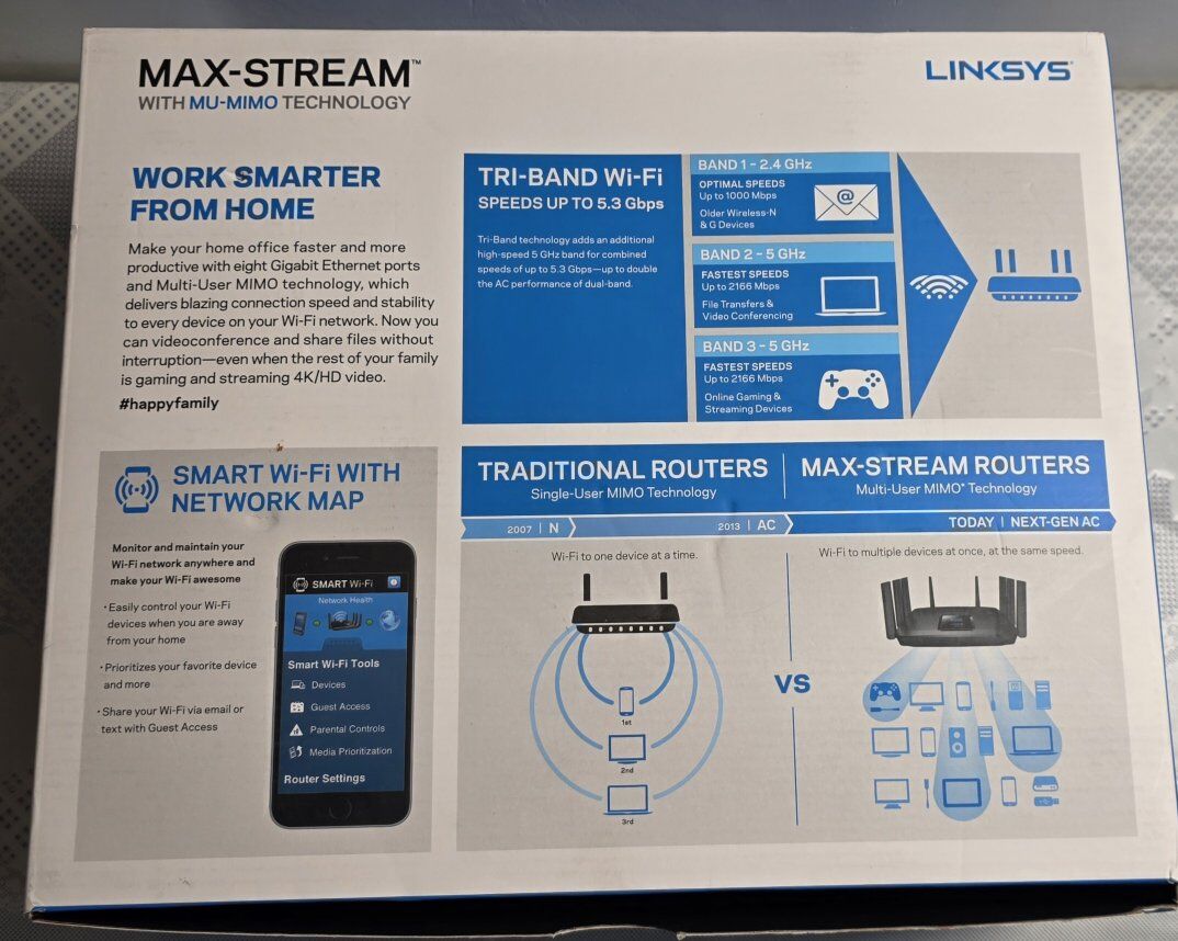 Pre-Owned Linksys EA9500 Tri-Band MAX-STREAM Wifi 5 Router, works excellent. See all photos, text message is better, see my other adds, thank you.