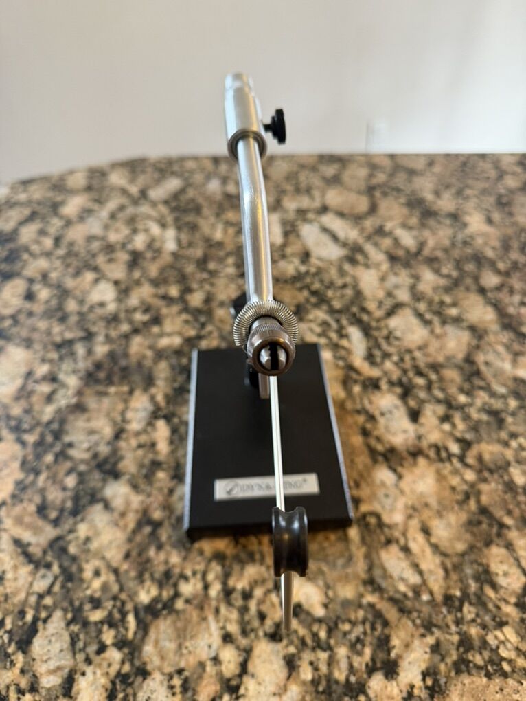 This is an awesome vise and is in great shape and will hold hooks from size 30 to 8/0. It’s easy to tie on and holds hooks without any issues!