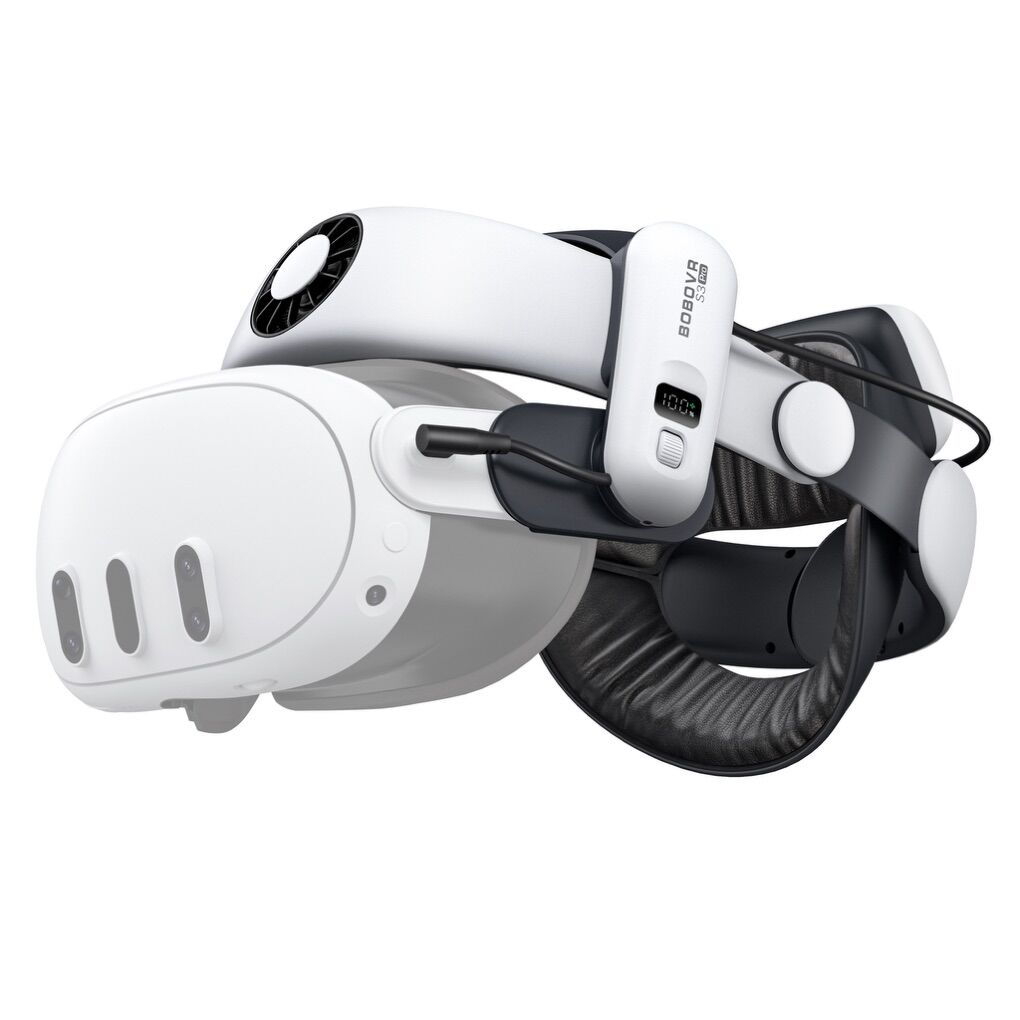 BoboVR S3 pro strap that provides a fan to keep your head cool and a Battery pack to Extend your Game time 2-3 extra hours, making a comfortable head-strap for your VR Needs.