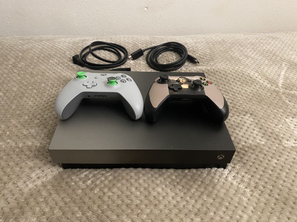 Console: Xbox One X Taco Bell Limited Edition (1TB). It’s the collector's model that makes the iconic Taco Bell chime when you turn it on. In used but good condition.