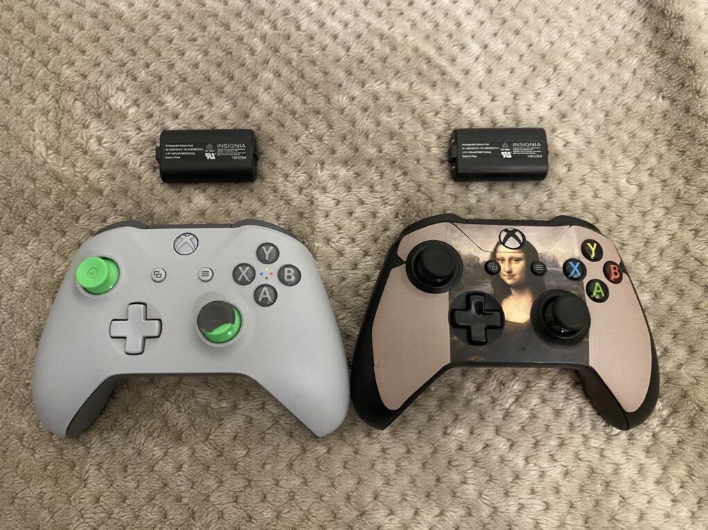 Controllers: 2 Wireless Controllers (the rubber is off/coming off on the thumbsticks, but the controllers work fine).
