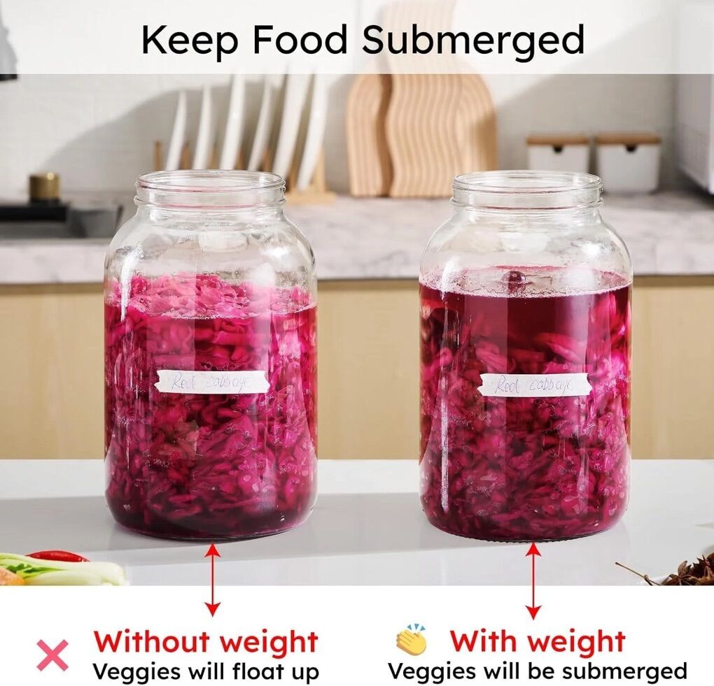 Prevent Floating: This heavy large gallon jar fermentation weight can keep everything passed down, preventing floating vegetables Great tool for fermenting pickling, and a great addition to your fermenting hobby.