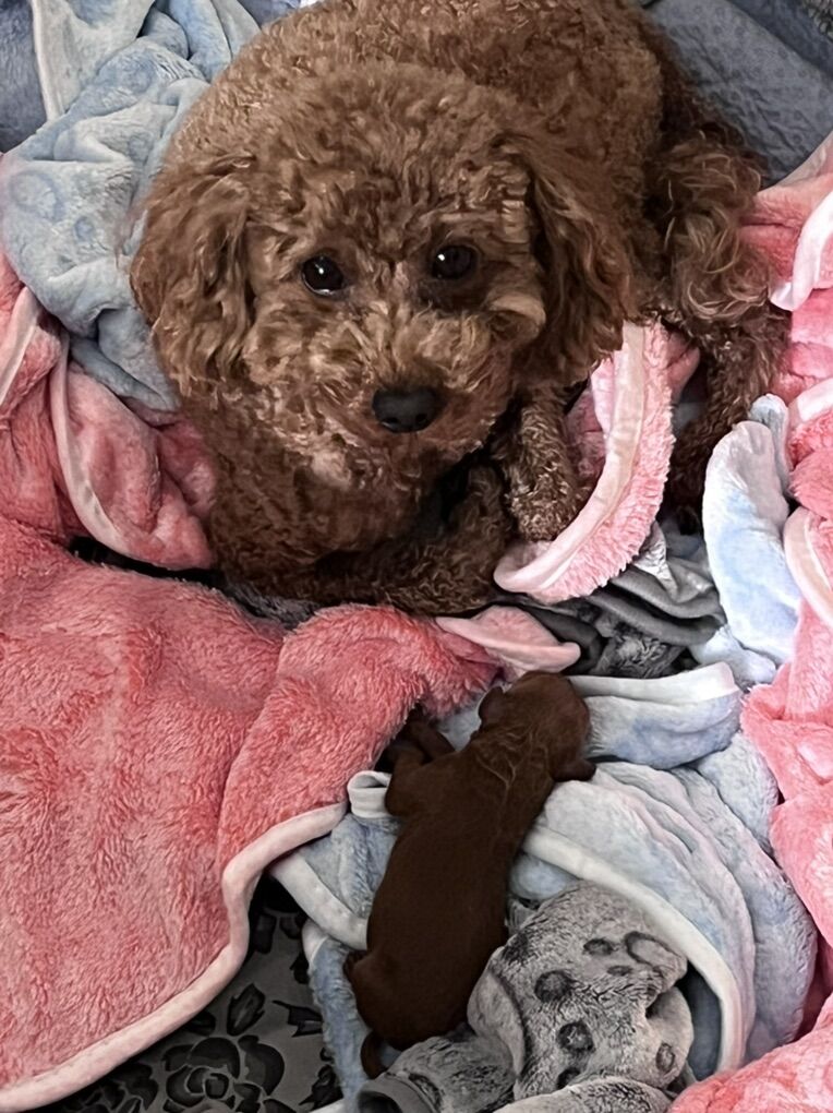 VenmoDeep red male cockapoo born 02/03/2026. He will be ready for a new home 03/24/2026. He will have deworming every 2 weeks and first set of shots. He will come with a blanket, puppy food and a toy. Mom is a cockapoo that weighs almost 7 lbs. Dad is a 3 lb poodle.