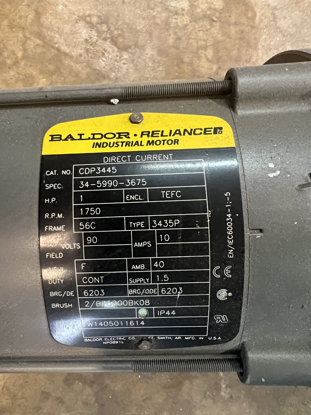 BALDOR, 1 HP, 1,750 Nameplate RPM, DC Permanent Magnet Motor - 59VX60|CDP3445 - Grainger