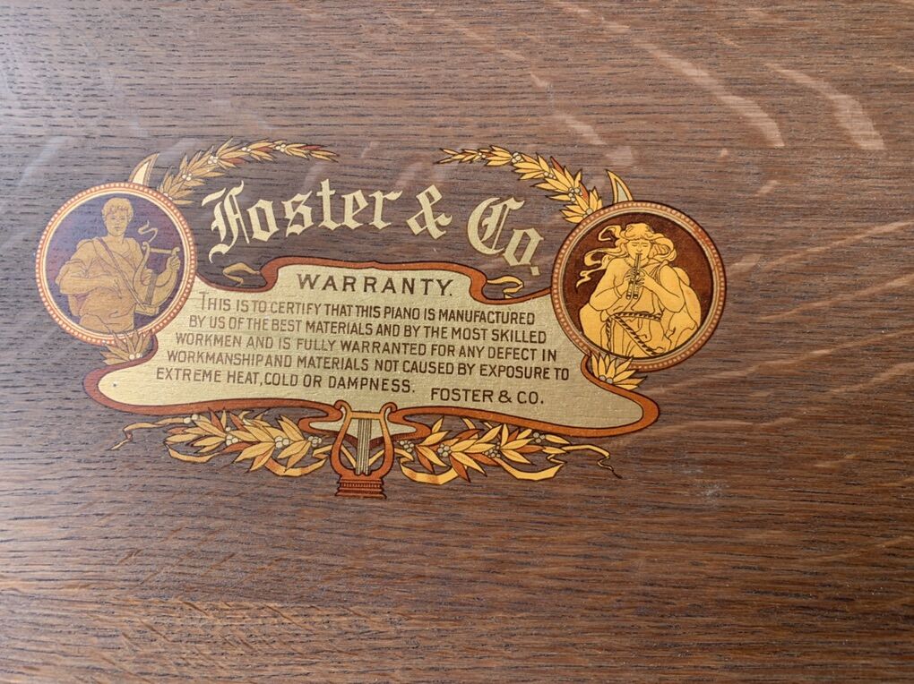 Early 1900, Foster & Co Player Piano. In good condition. The bellows need some attention but will play. 4 to 5 rolls of songs included.