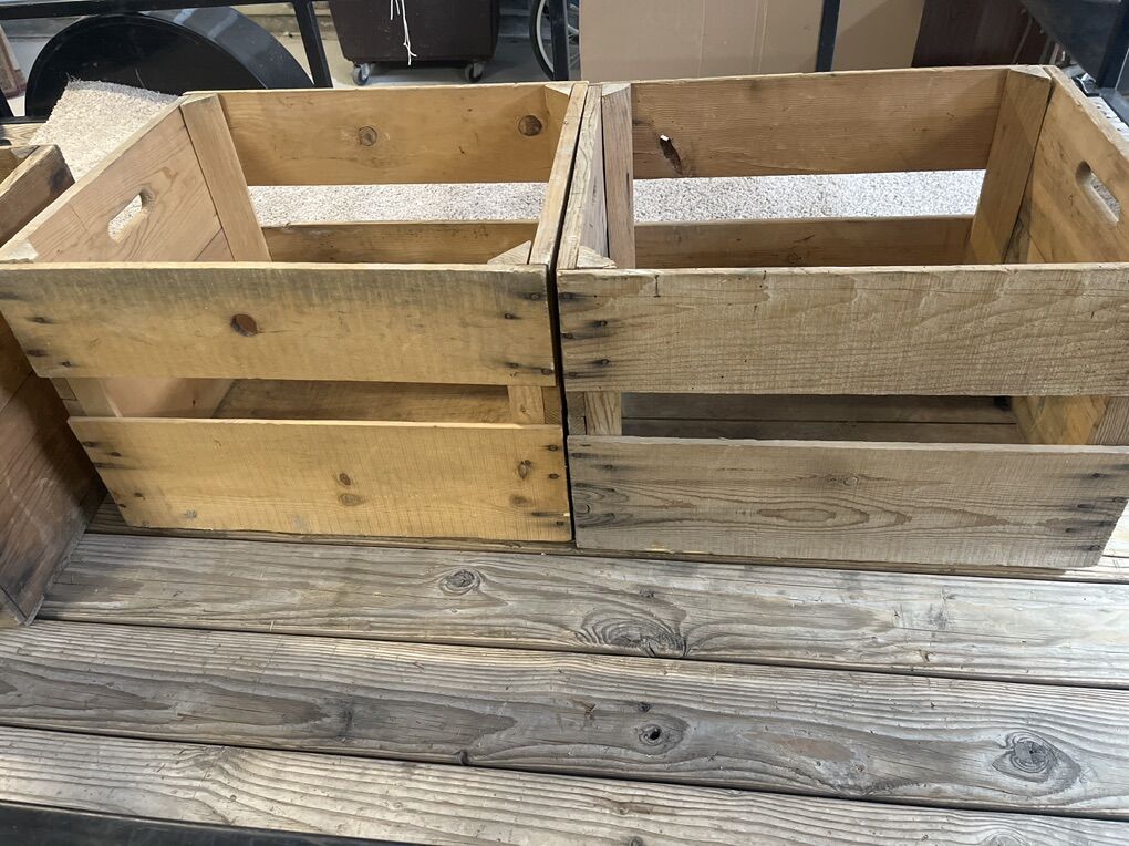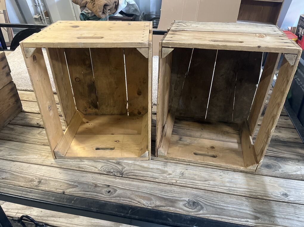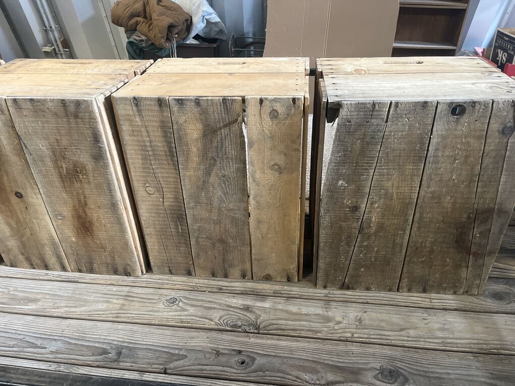 Have four wood crates with handles 23 “ x 18 “ 15”tall good condition