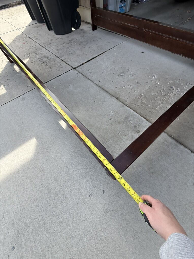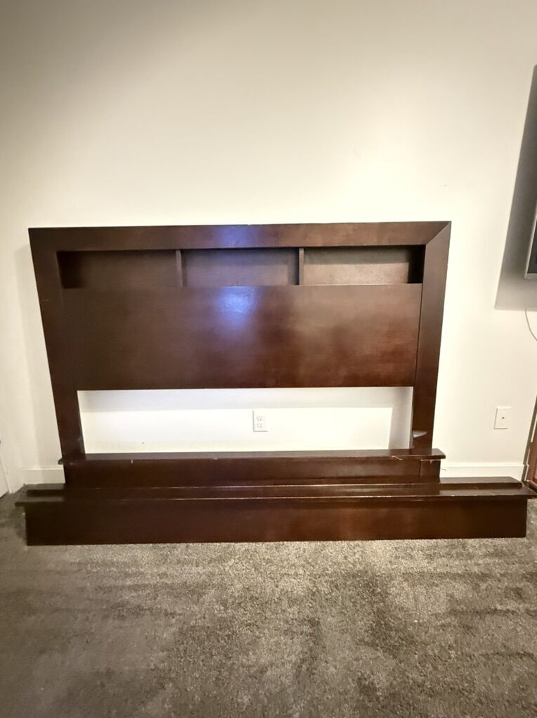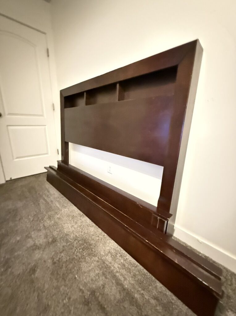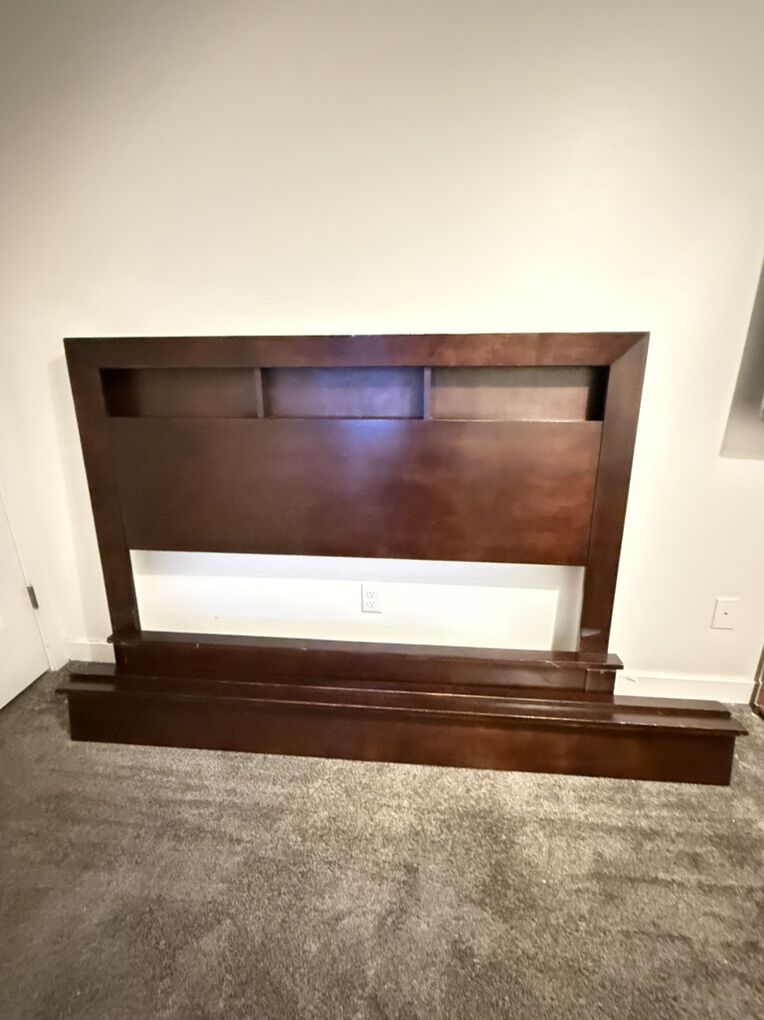 VenmoWooden bed frame. Head board, foot board, and two side panels. Takes 15 seconds to set up. Very strong frame and looks great! Asking Price: $80 OBO